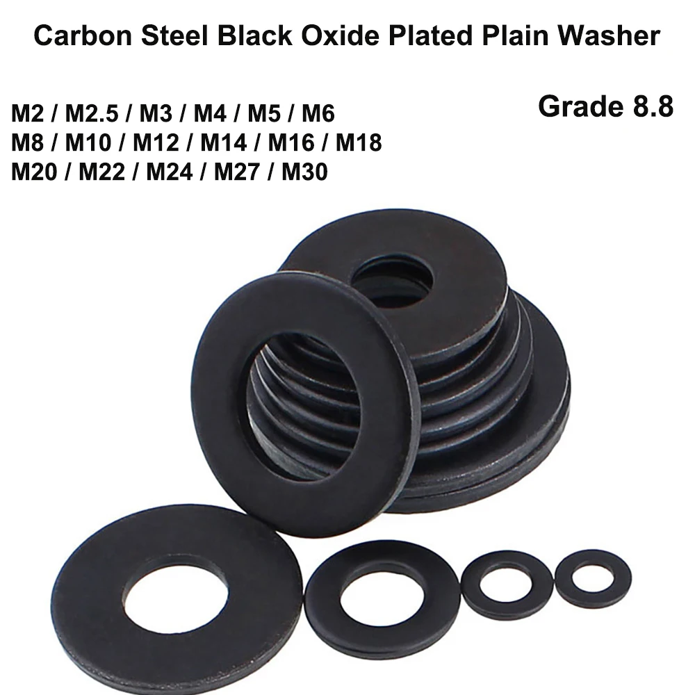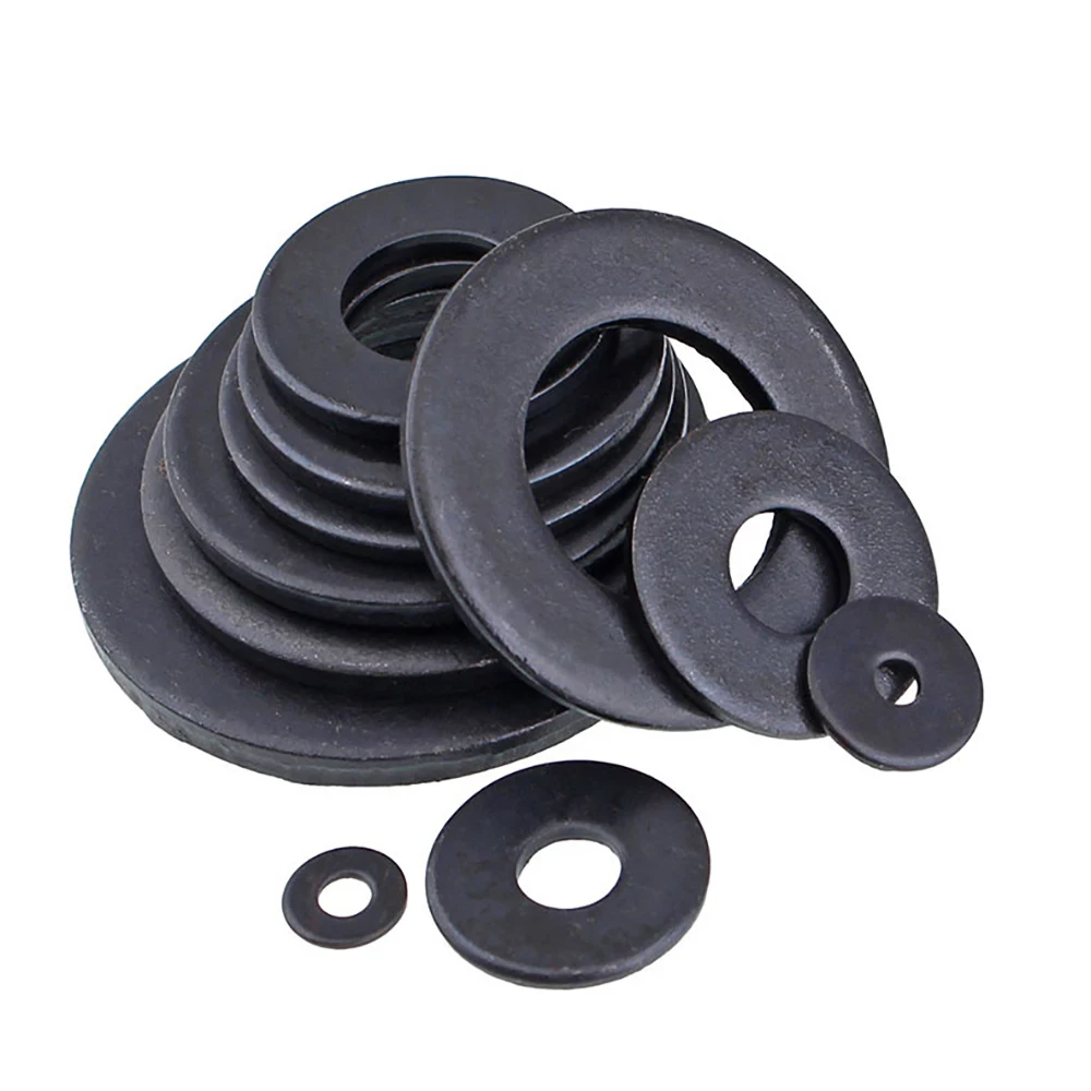 Черная окисленная простая шайба из углеродистой стали M2 M2.5 M2.6 M3 M4 M5 M6 M8 M10 M12 M14 M16 M18 M20 M22 M24 M27 M30