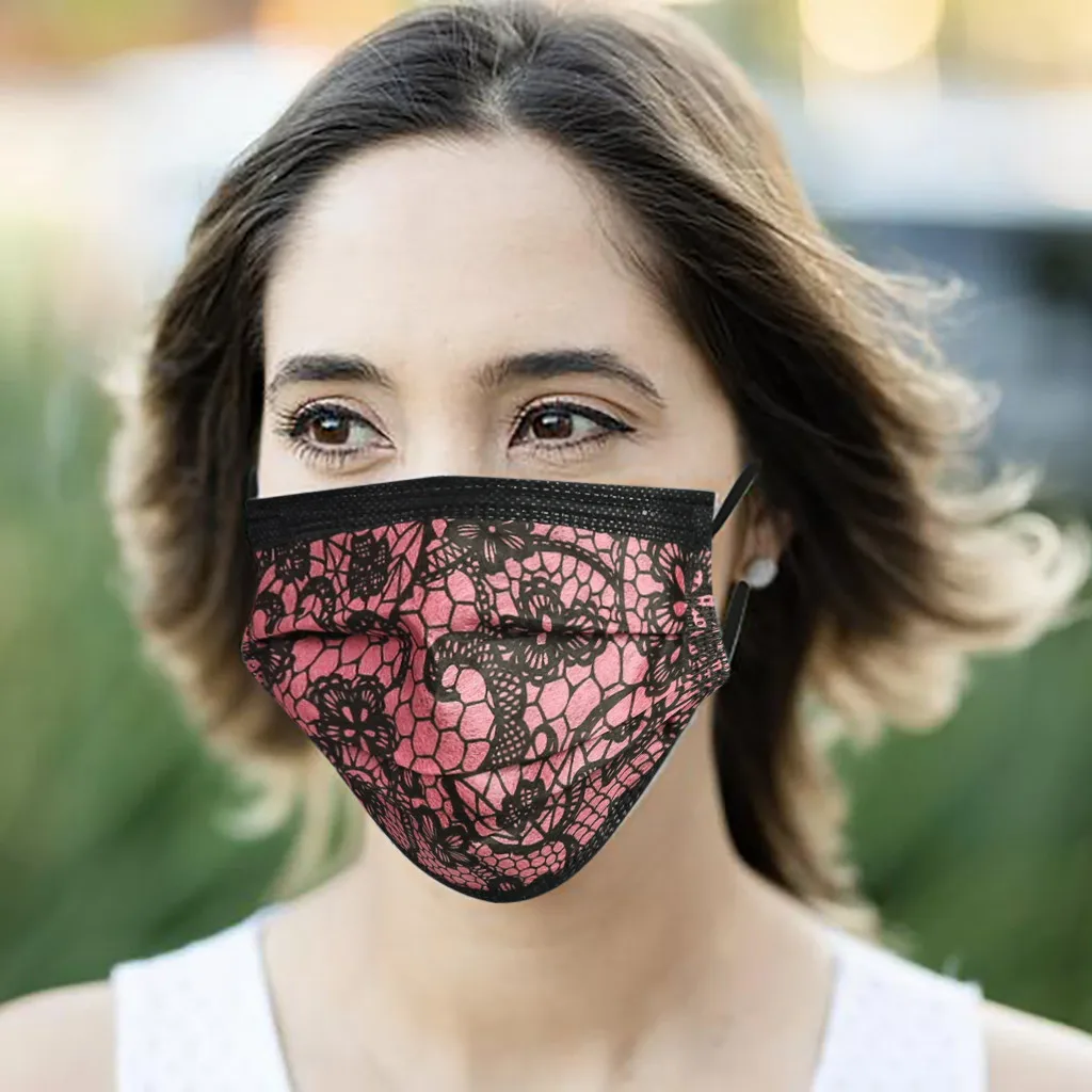 10 шт взрослые модные кружевные одноразовые защитные трехслойные дышащие маски для лица