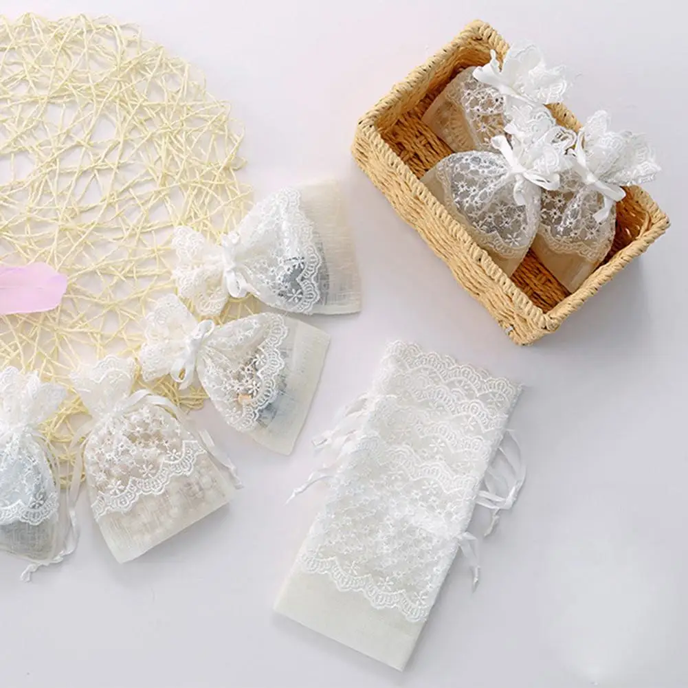 Белый шнурок из сетчатой ткани, мешки из Свадебная вечеринка печень...