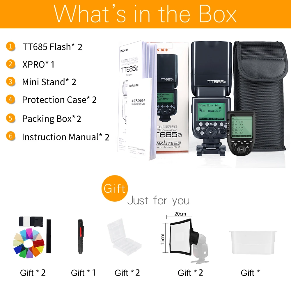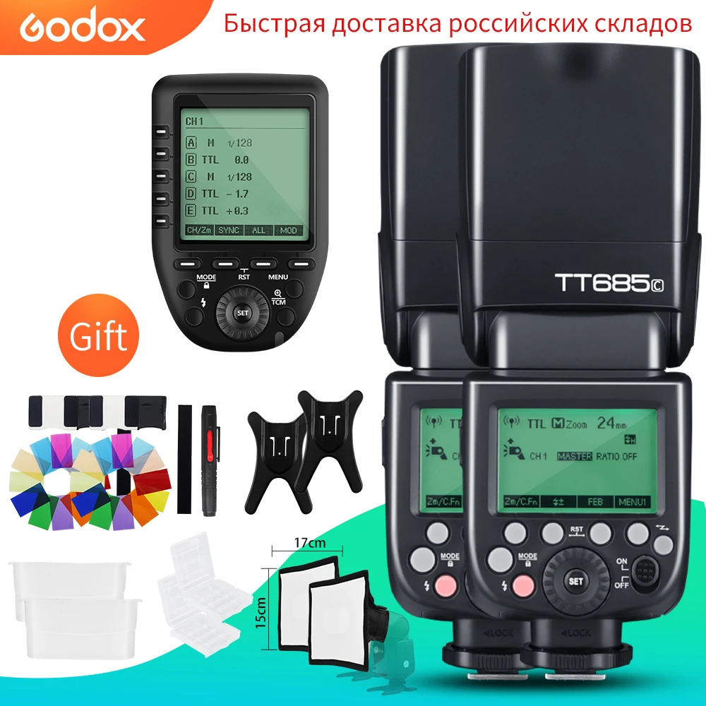 Вспышка Godox TT685C TT685N TT685S TT685F TT685O TTL HSS с передатчиком Xpro для Canon Nikon Sony Fuji Olympus, 2 шт.