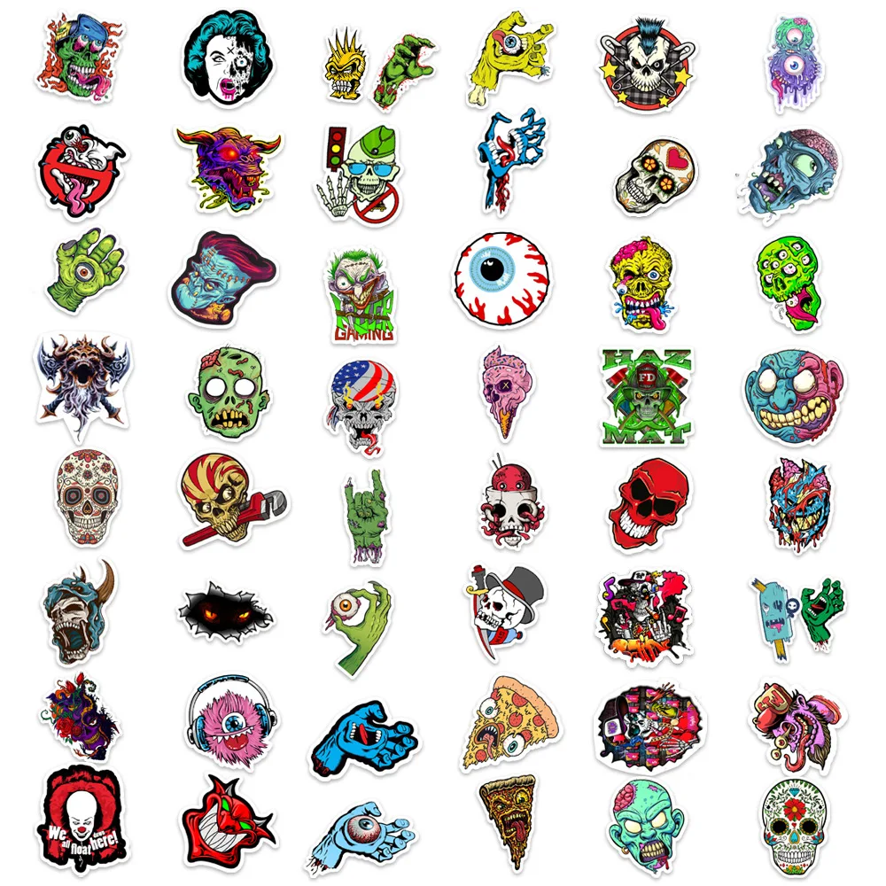 Наклейки для ноутбука, гитары, шлема, чемодана, скейтборда, автомобиля, Винни, граффити, панк, террор, черепа, наклейки, бомба, 50 шт.