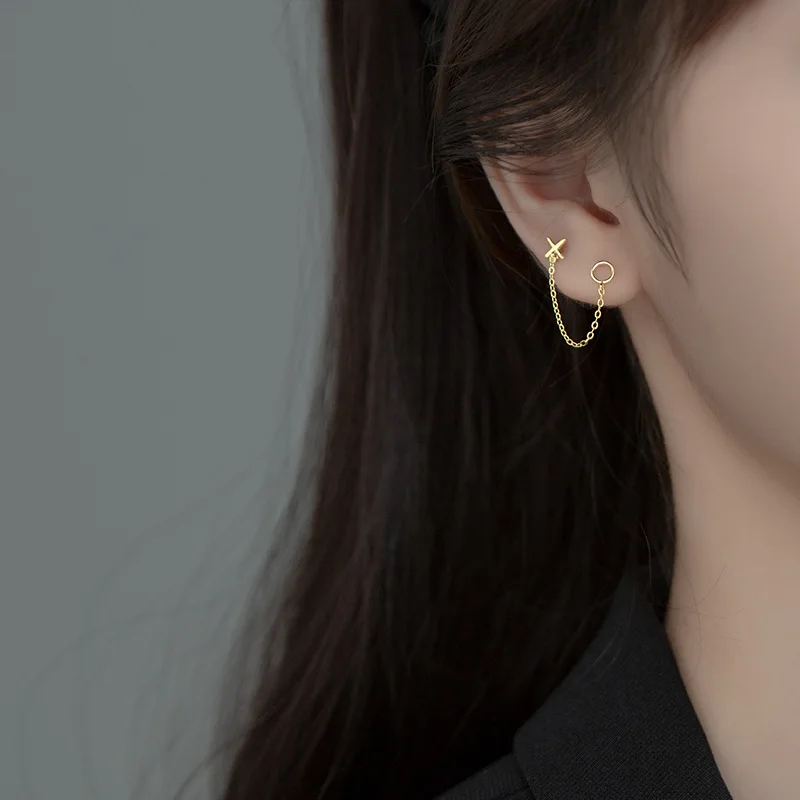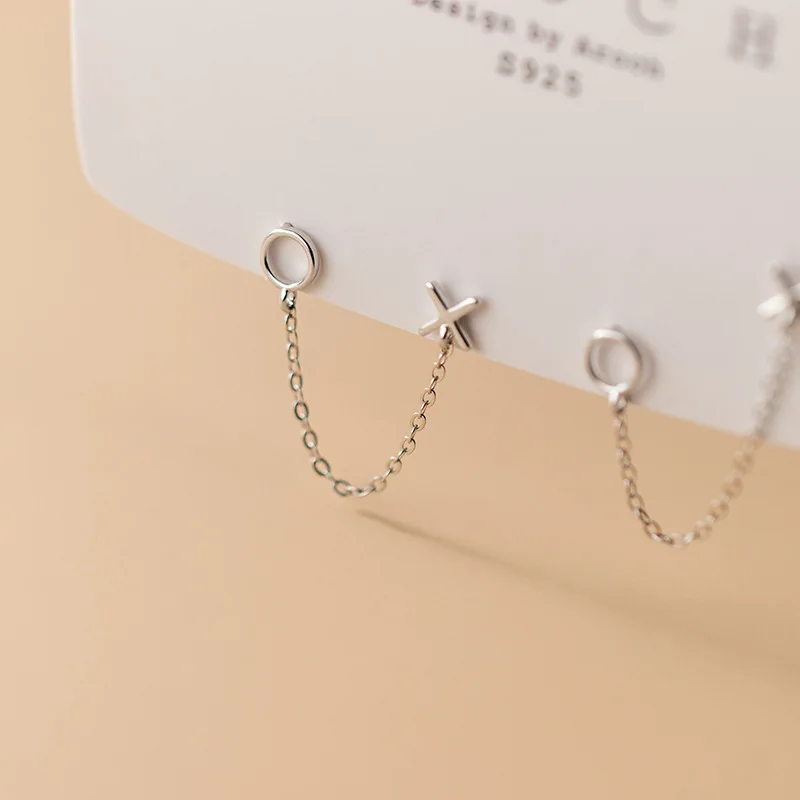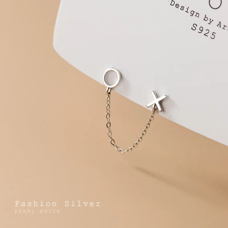 Серьги-гвоздики женские из серебра 925 пробы, с цепочкой