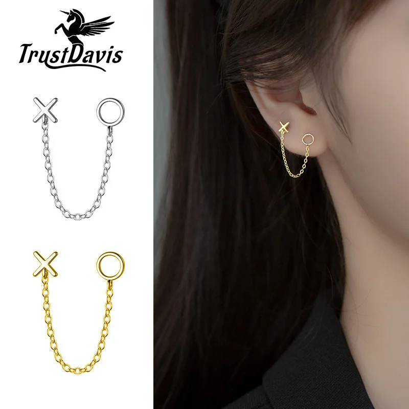 TrustDavis Настоящее серебро 925 пробы модные крест цепи обруч серь...