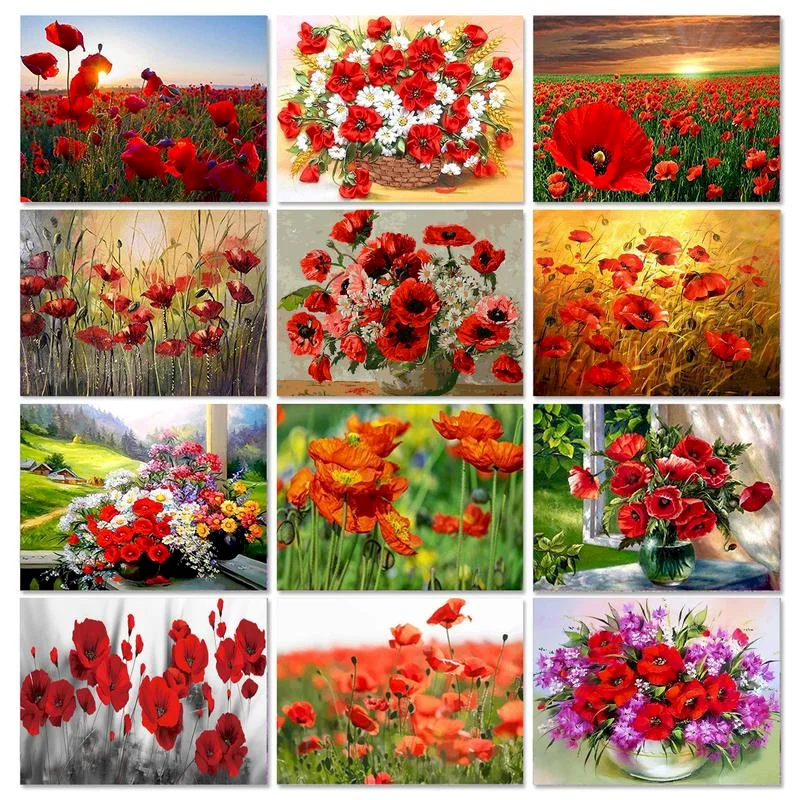 GATYZTORY алмазная живопись цветы вышивка крестиком Алмазная вышивка Мак картина Стразы для рукоделия хобби домашний декор