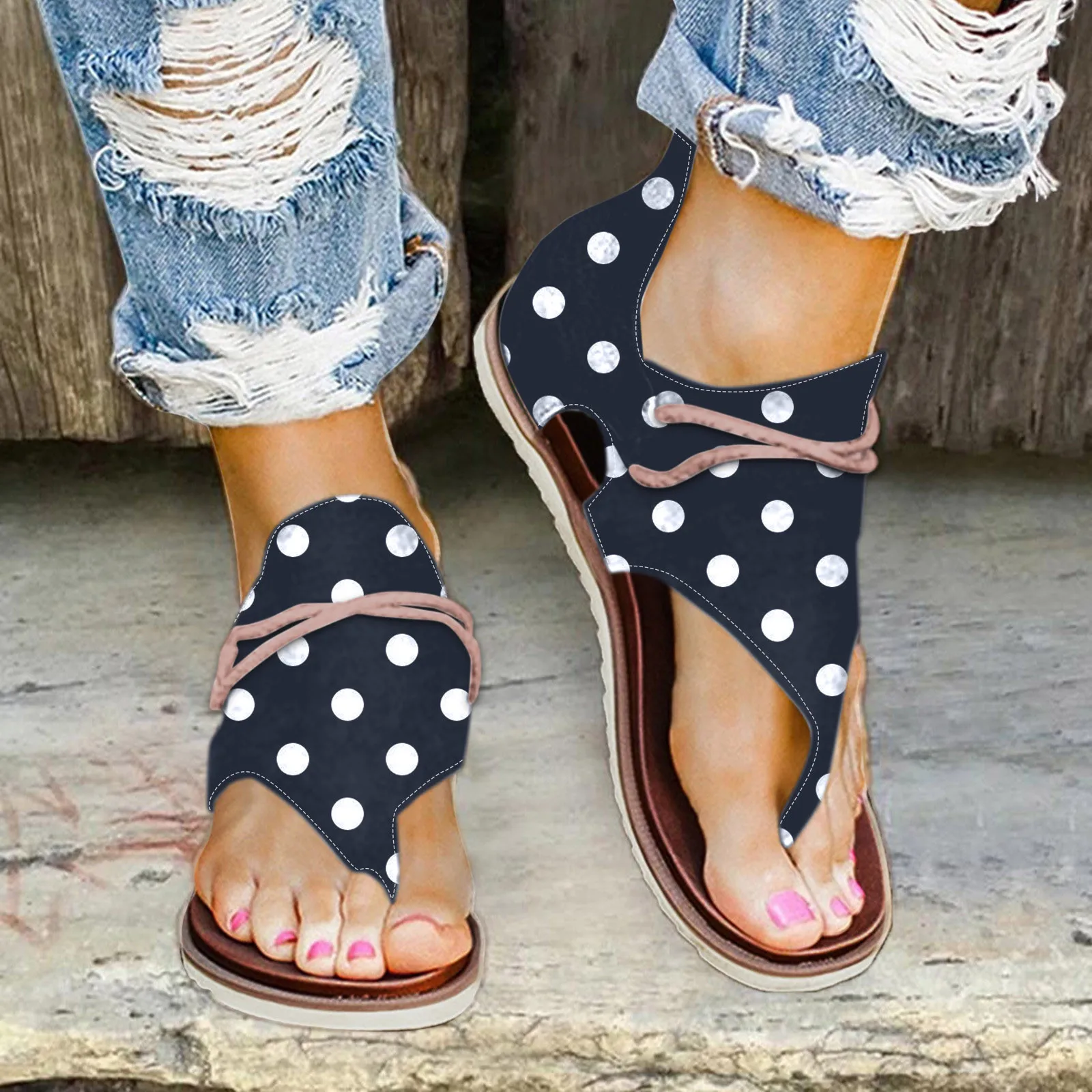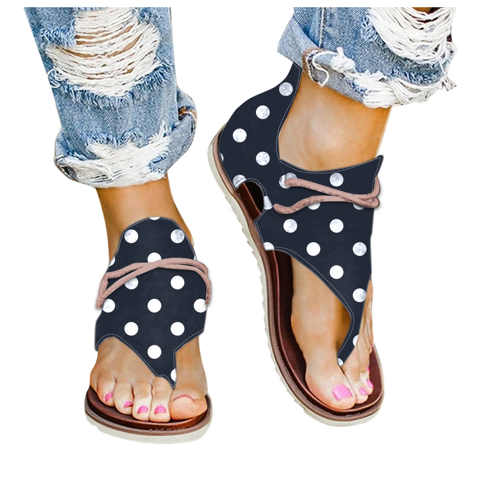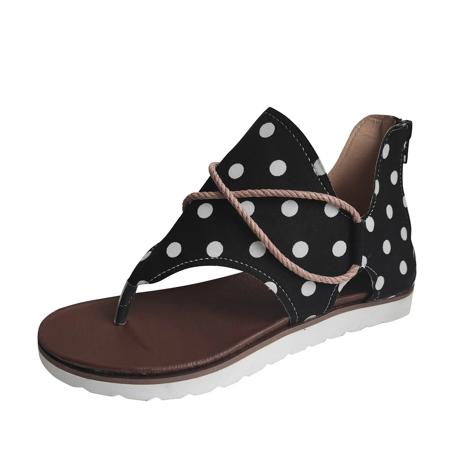 JAYCOSIN женские сандалии 2021 Летняя женская обувь на плоской подошве Этническая обувь на платформе с принтом в горошек плоские шлепанцы сандалии на молнии