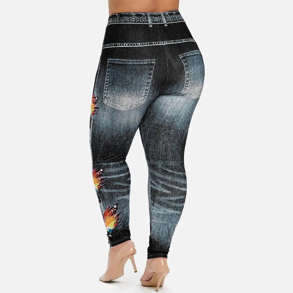Женские леггинсы с имитацией ковбойских принтов, облегающие эластичные брюки-карандаш с завышенной талией, укороченные джинсовые леггинсы с цветочным принтом, 2021