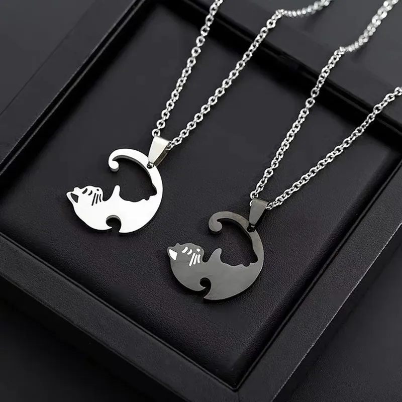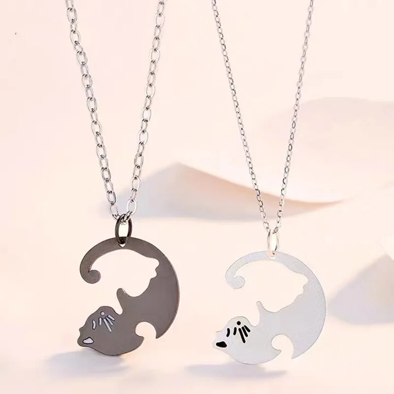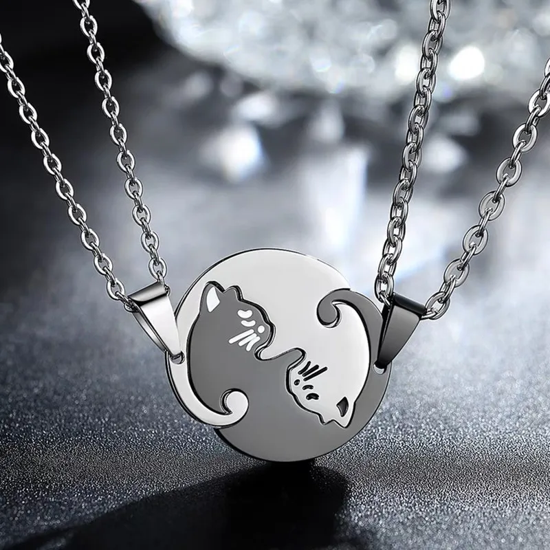 Ожерелье с котом для влюбленных, чокер из нержавеющей стали с котенком и животным, ювелирное изделие для пар, хороший подарок на день Святого Валентина
