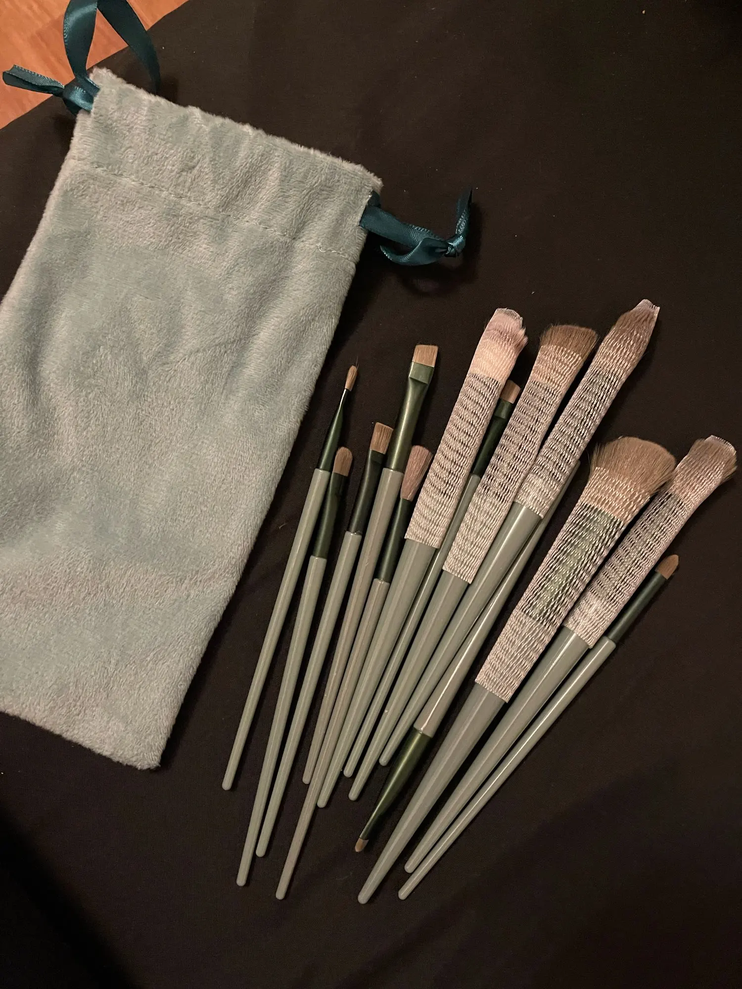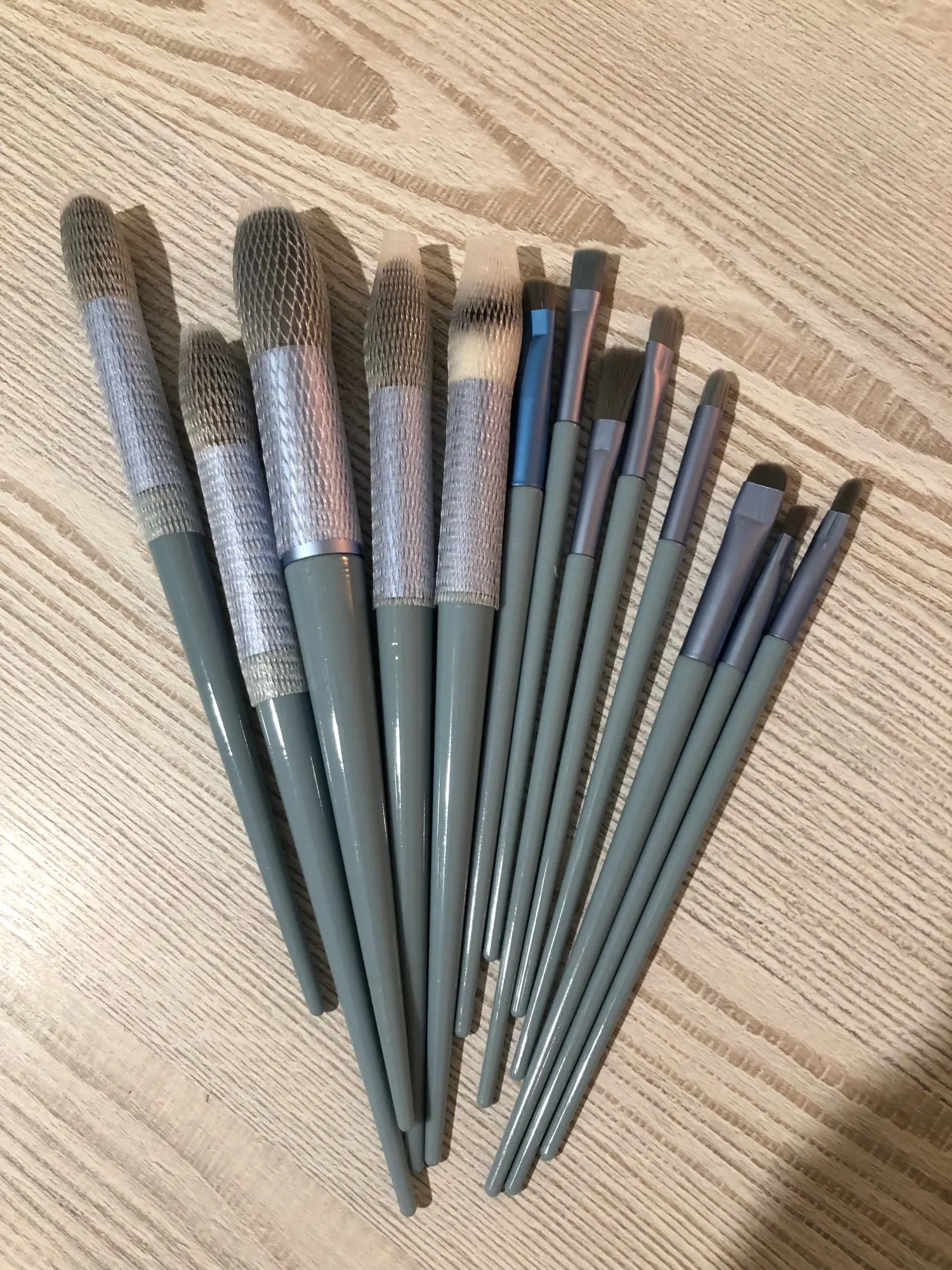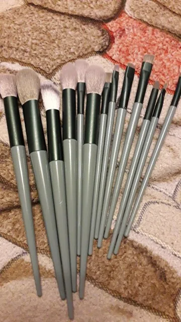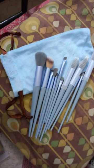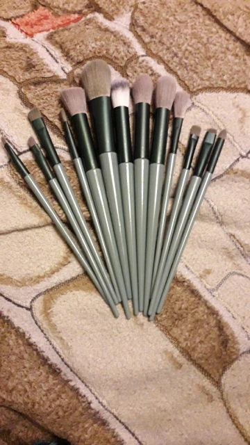 Доставка была крайне быстрой .Все в фиолетовом мягком чехле.Кисти побольше были в сеточке,маленькие нет .На ощущение жестковатые .Одна кисть сразу вылиняла ,не успев её использовать .Большие кисти -не такие оказались уж и большими.Я бы сказала маленькие .Основание кисти -дешевый пластик который гнётся .И при жёстком использование просто треснут .Кисти на 4/10.Заказывала на а такую цену,но кисти были гораздо качественней .Ни одна не линяла .