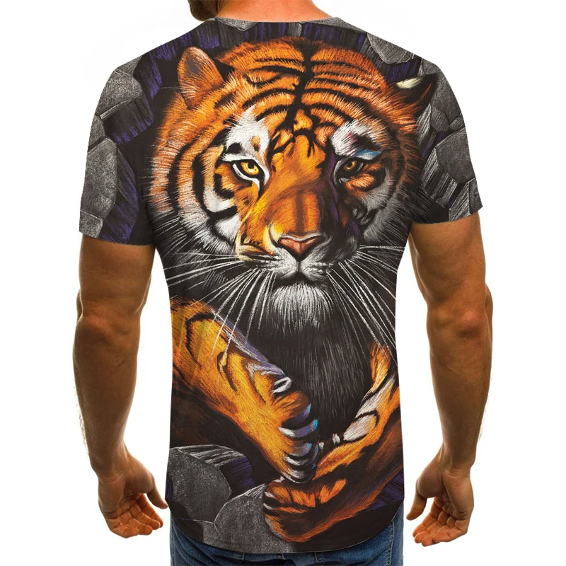Футболка мужская с принтом тигра, модная рубашка с коротким рукавом...