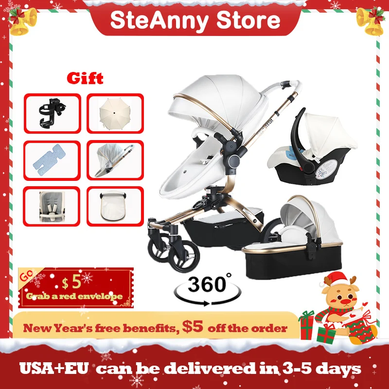 Коляска детская 3 в 1, 2 в 1, из искусственной кожи, 2021