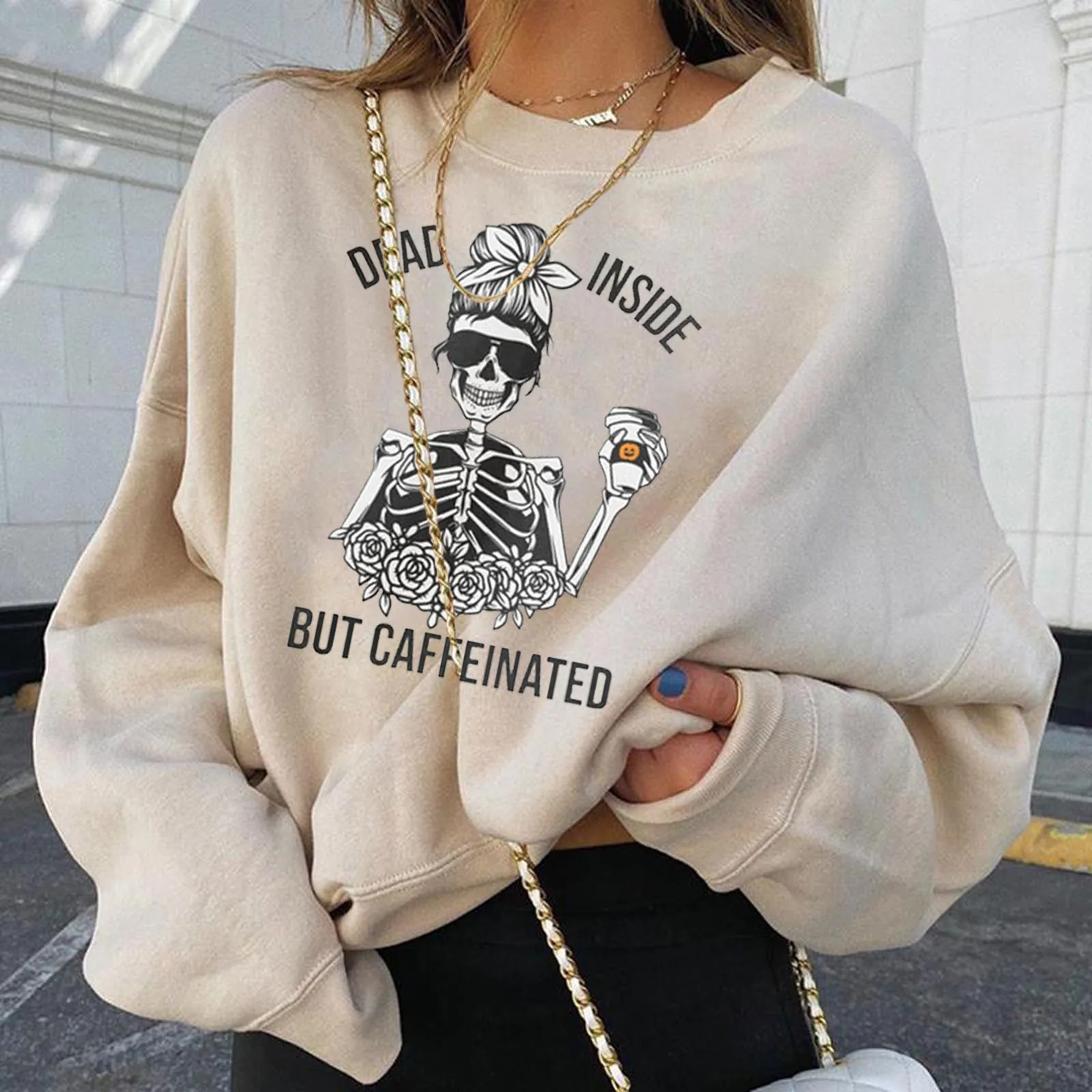 Женский пуловер с принтом черепа и тыквы, теплый свитшот с длинным рукавом для Хэллоуина, осень 2021