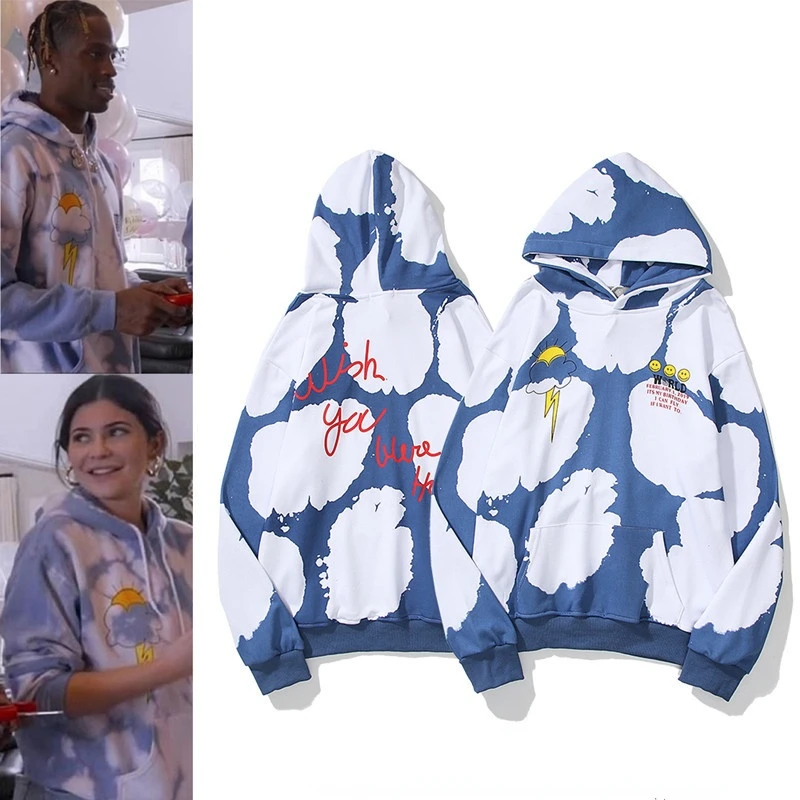 2021 Kpop Kanye хлопковые толстовки с принтом молнии и облаков, Муж...