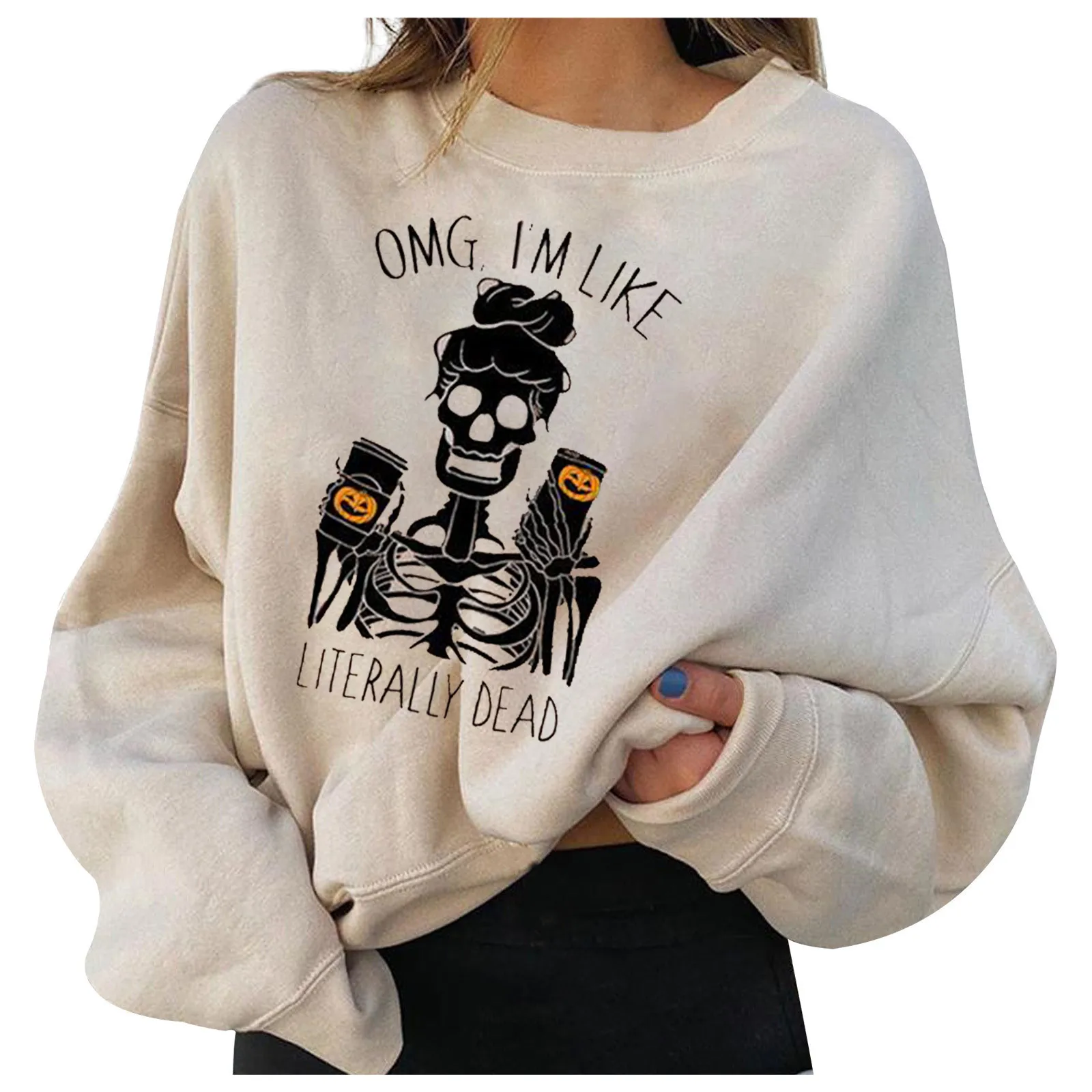 Свободные пуловеры, женские топы, Женские Смешные Пуловеры с длинным рукавом в виде черепа, тыквы, кофе, Хэллоуин, Толстовка, Женская Толстовка