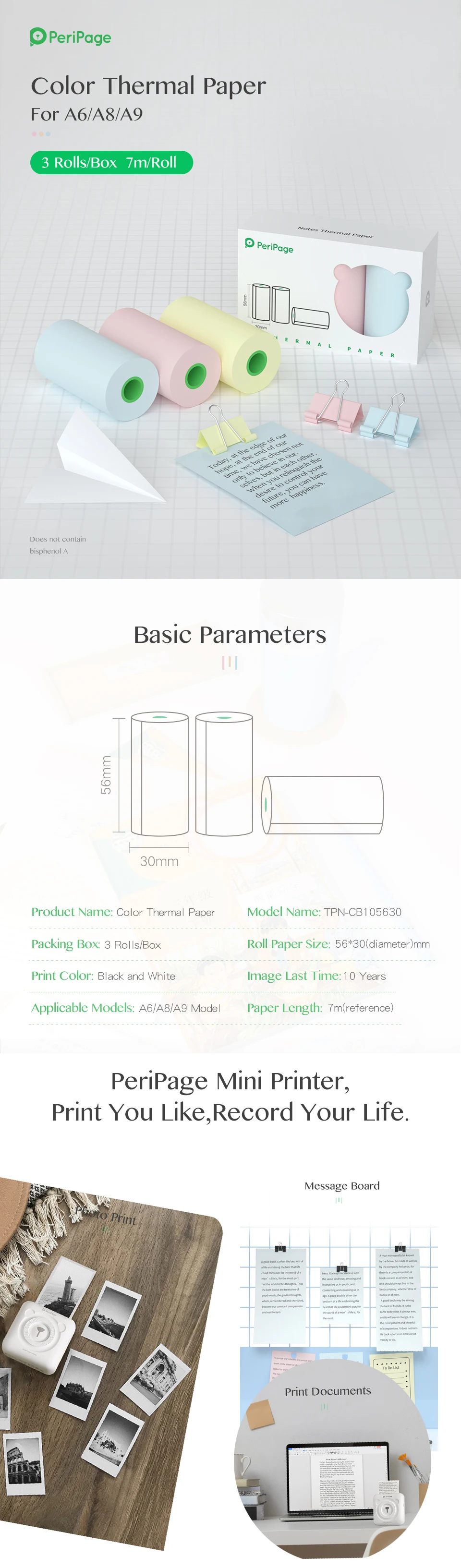 Термальность этикетка Бумага для PeriPage A6 Карманный принтер с са...