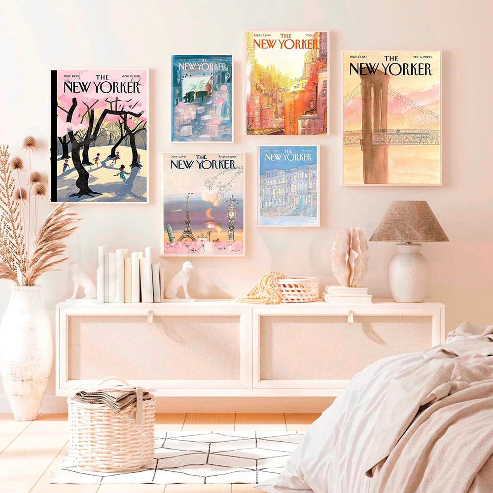 The New Yorker журнал обложки Плакаты для мягких цветов интерьера Настенная Художественная печать Настенный декор Современный интерьер Пастель