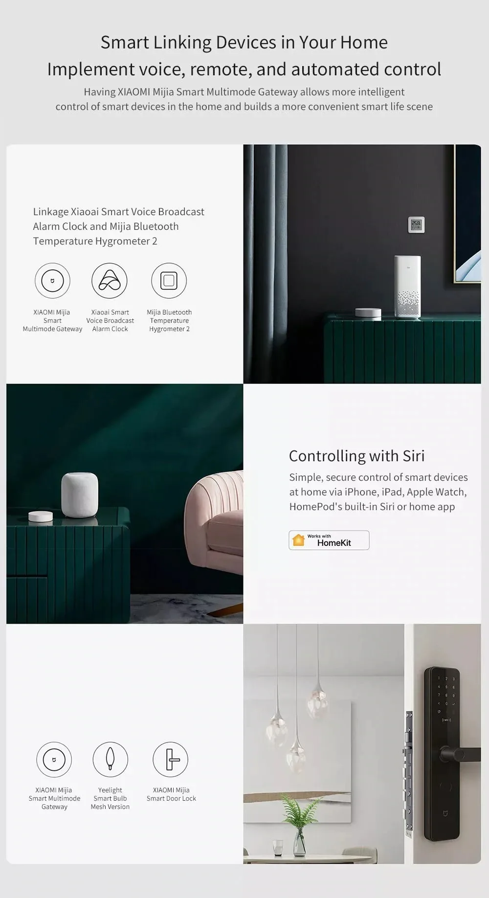 Шлюз Xiaomi Mijia ZigBee, умный сетевой хаб с несколькими режимами,...