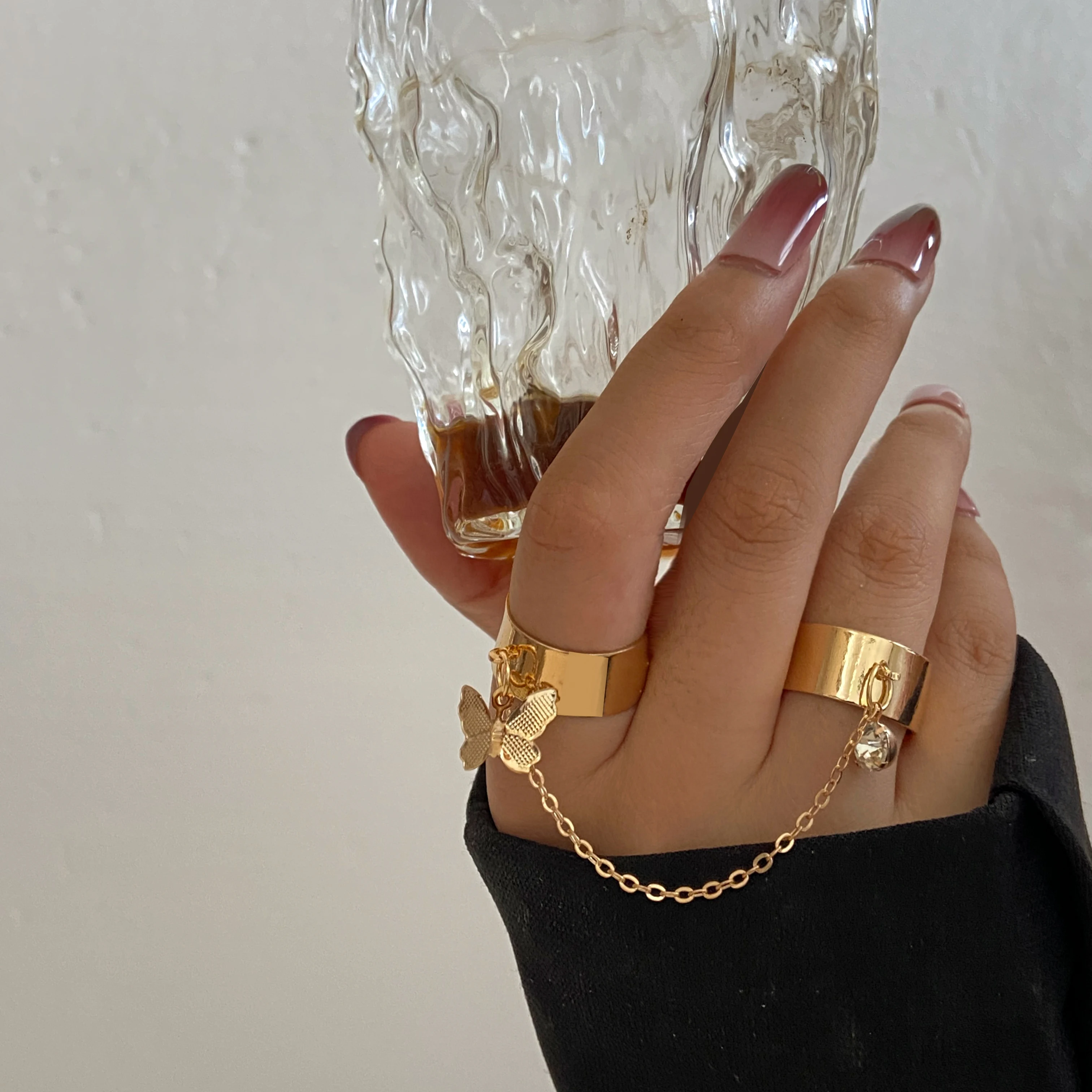 Модные кольца в стиле панк с цепью и бабочкой, многослойные крутые ...