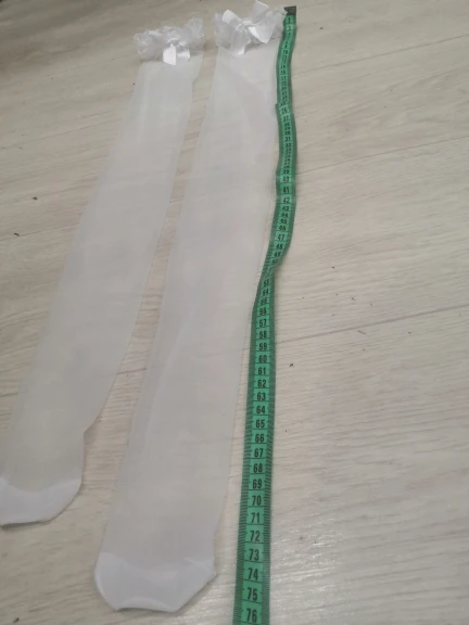 Заказ пришел быстро с Китая. По внешнему виду ну не очень. Хоть на фото и у модели длинные чулки ,но я заказывала думая что они 62 см ,чуть выше колена. По размеру ,ляшка у меня мощная ,но перетягивает резинка как палку салями .длина у них вообще 75. Чтоб сидело как на модели ляшка должна быть не больше 40 см.