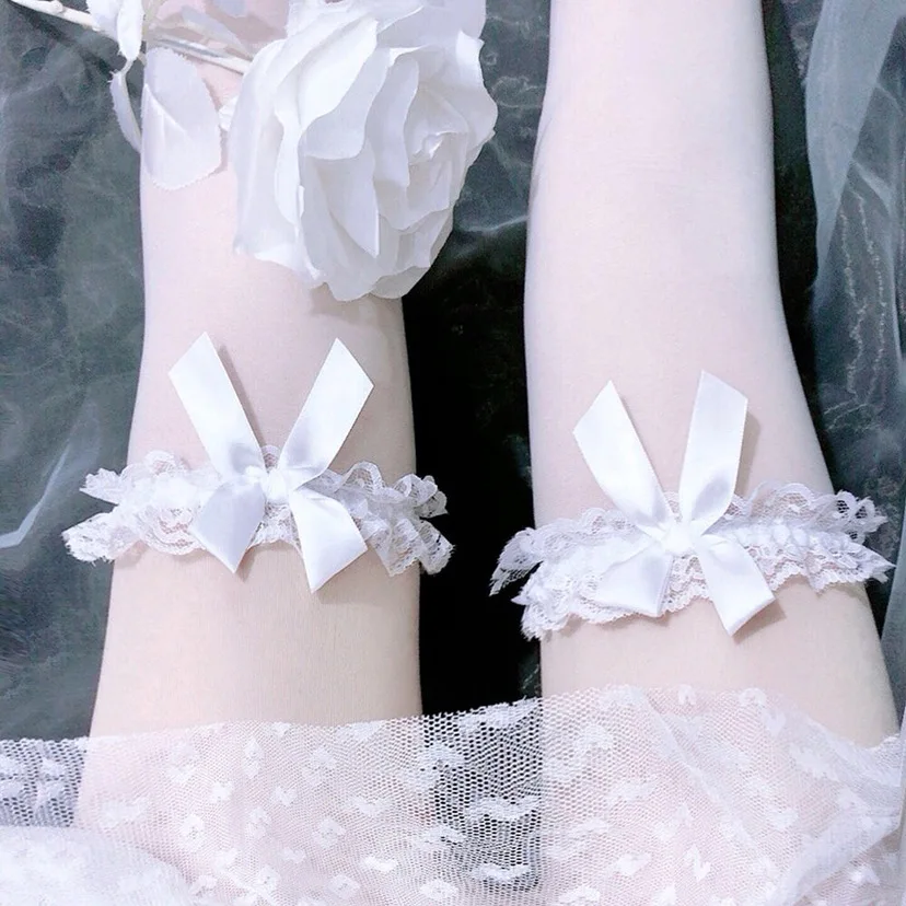 Носки горничной лолиты до колена, костюмы для косплея, аксессуары, нейлоновые кружевные носки с бантом, милые длинные носки Kwaii для девочек, женские белые гольфы