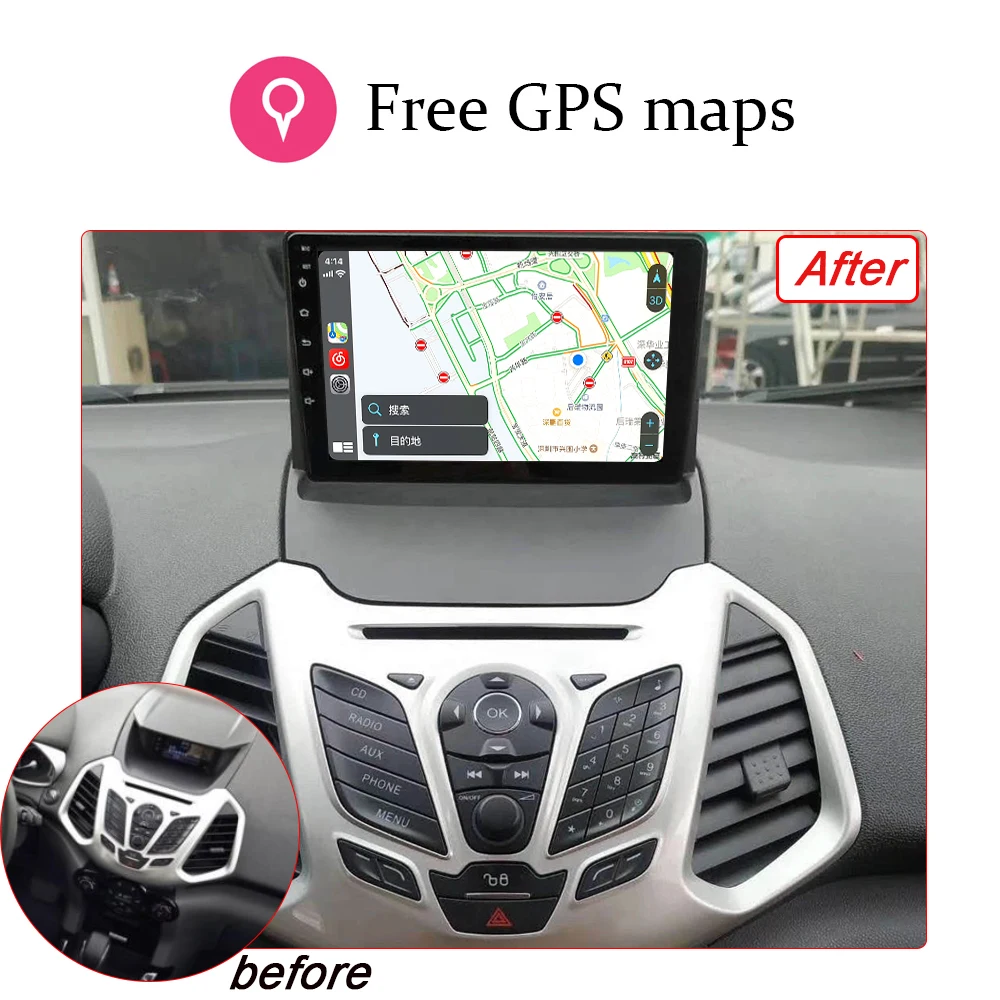 Автомагнитола 2 Din, 9 дюймов, для Ford Ecosport 2013, 2014, 2015, 2016, 2017, плеер, Android 11, GPS-навигация, Wi-Fi, 4G, DSP, CarPlay, Bluetooth