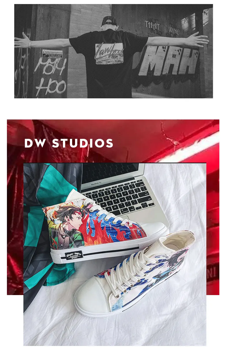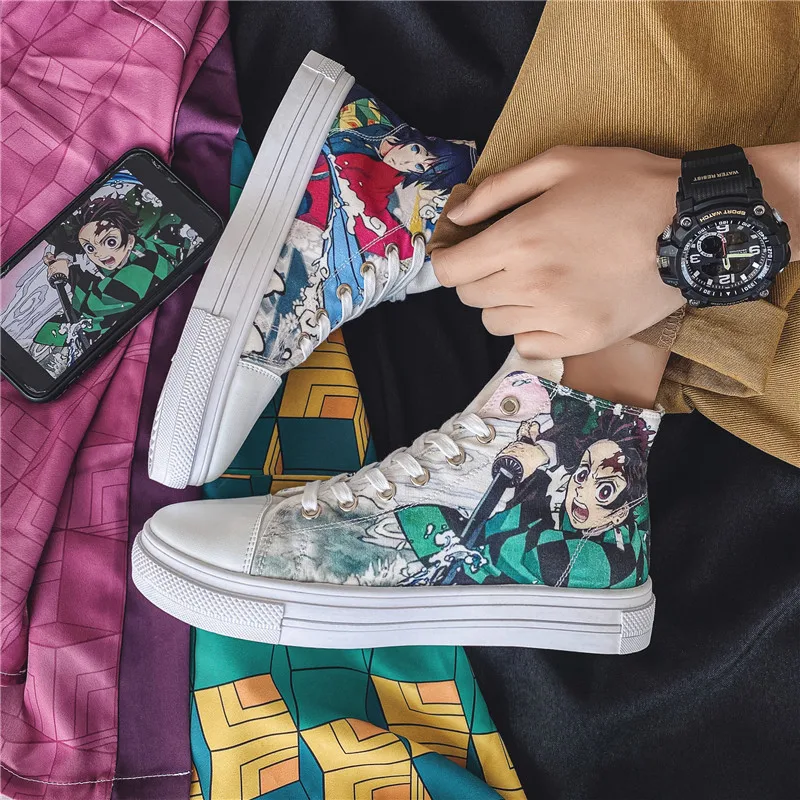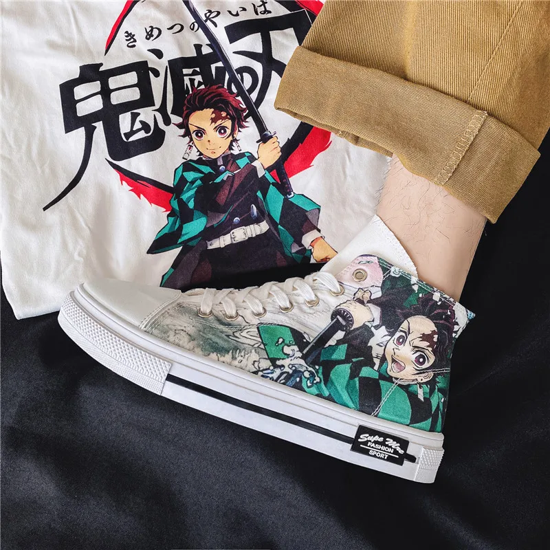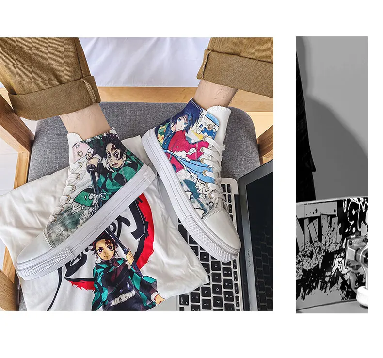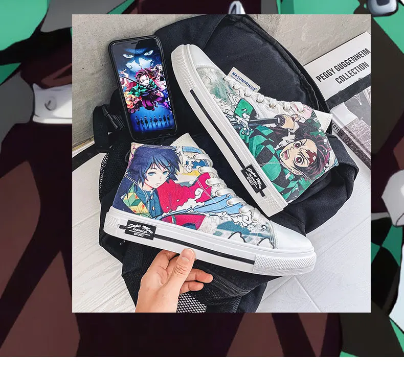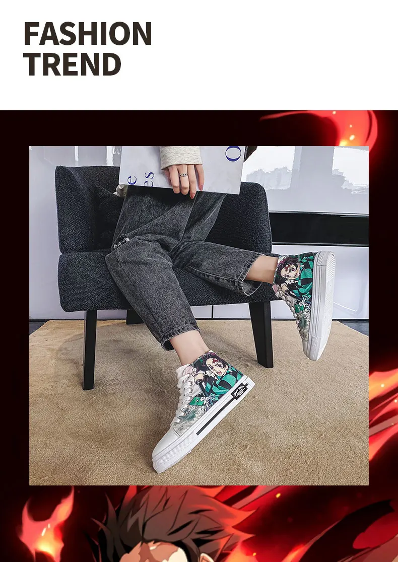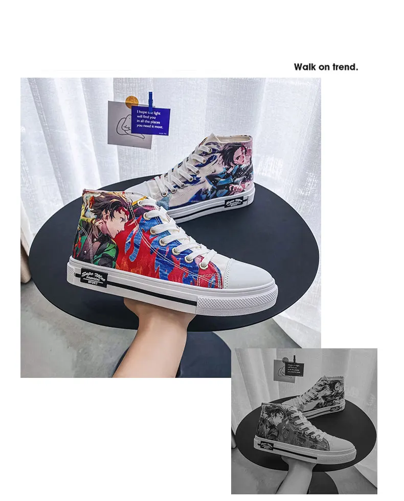 Мужские парусиновые туфли с высоким берцем, черные, с принтом, вулк...
