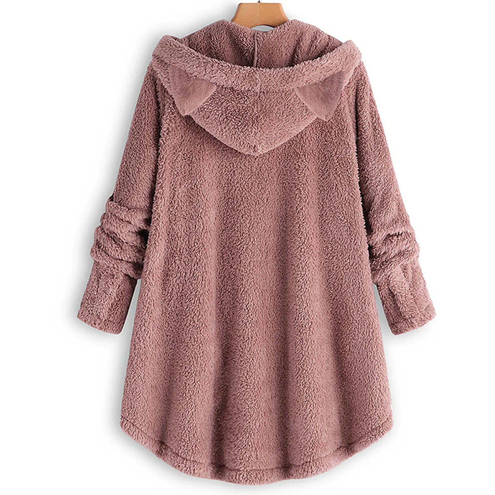 Женское модное пальто с капюшоном и кошачьими ушками, асимметричное однотонное пальто с карманами
