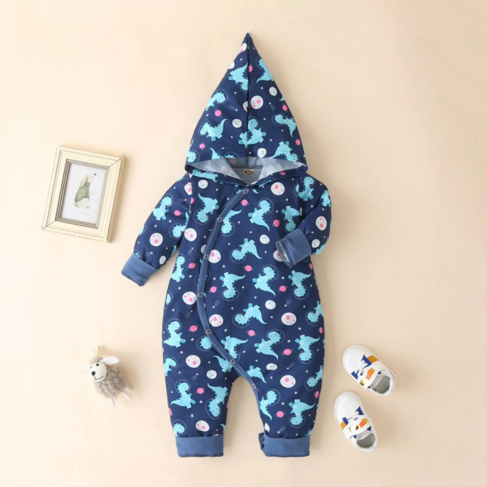 Новый Детский комбинезон с капюшоном, зимний комбинезон с длинным рукавом и мультяшным принтом динозавра, теплый и модный детский комбинезон 2021 #