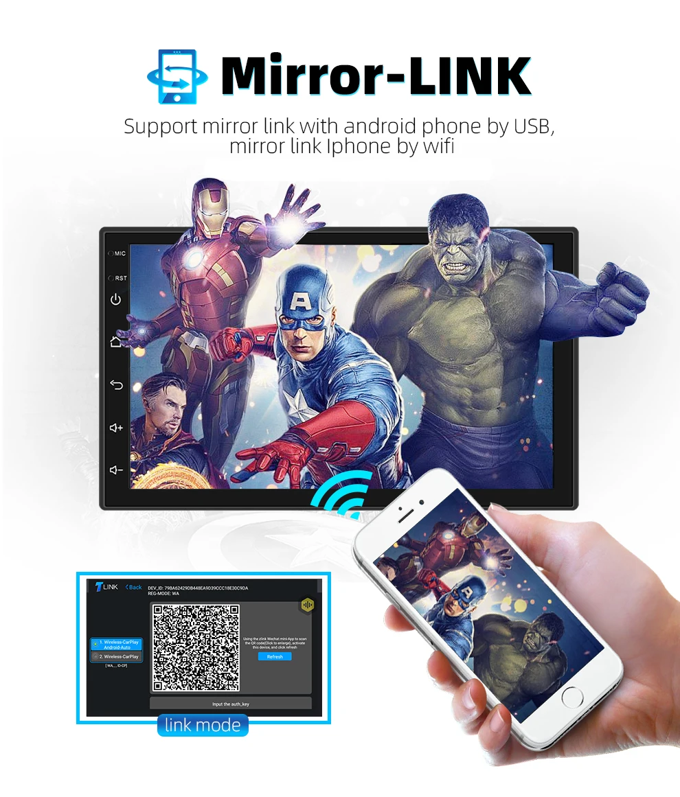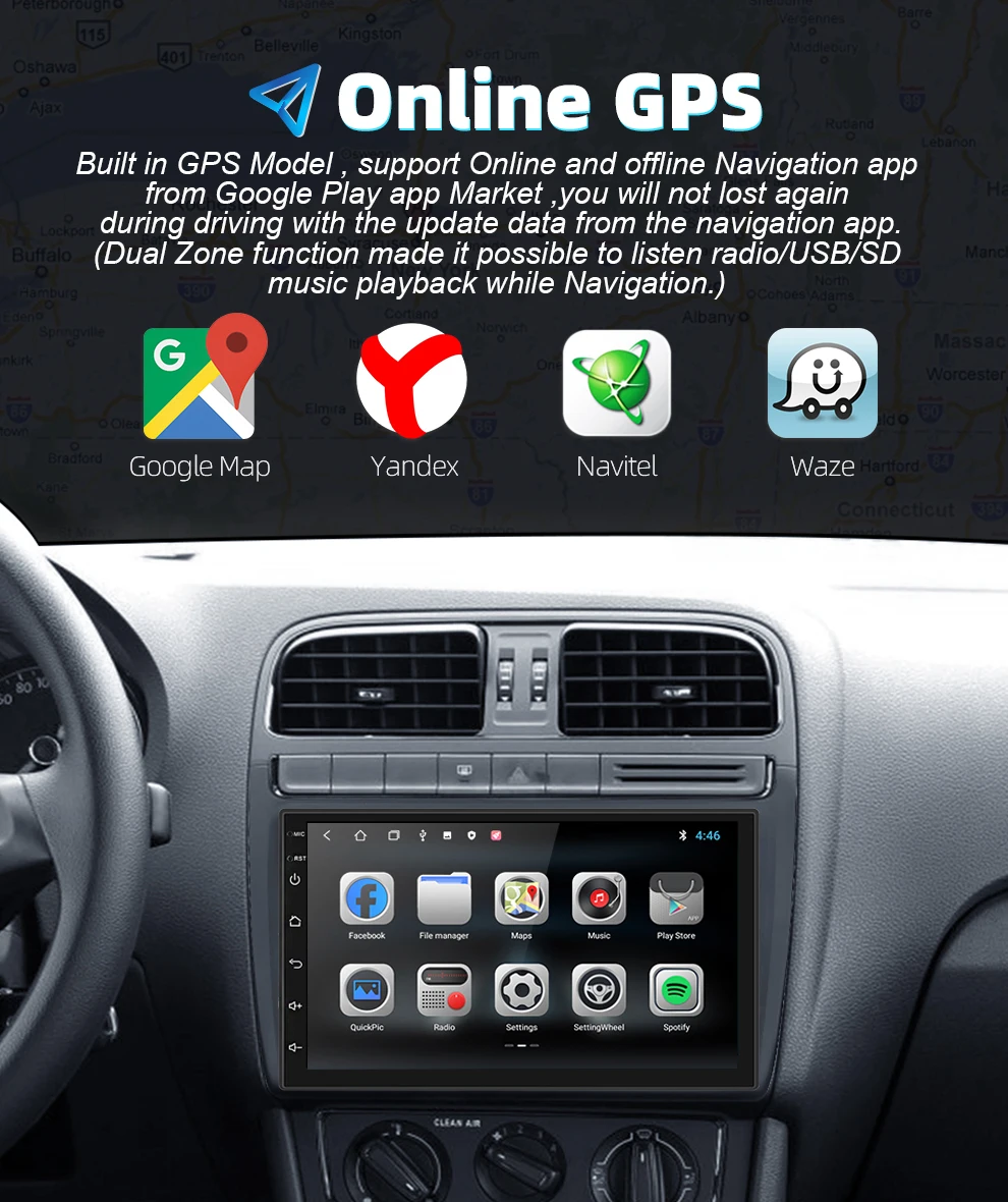 Радио диапазон: FMВидеовыход: ПоддержкаКарты: Встроенные автономные картыWIFI: поддержкаUSB: двойной USB интерфейсФормат аудио: MP3/ACC/APE/FLAC/WAV/M4A/MP2/ARM/OGGФормат видео: MP4/3GP/AVI/DVIX/FLV/MKV/MPG/4KФормат изображения: JPG/PNG/GIF/JEPGЯзык: китайский/английский/французский/итальянский/Корейский/японский/арабский/испанский/португальский/русский/Турецкий/Вьетнамский/Иврит/Польский/немецкий и т. Д.Особенности:● HD 7 ''/9''/10,1 ''2.5D Закаленное стекло зеркало авто радио плеер● Обновленная двойная система зеркальной связи: IOS/Android зеркальной связиIOS one-way:IOS поддерживает мобильный телефон с односторонней проекцией на машинуAndroid двусторонний: Android поддерживает мобильный телефон двустороннее соединение● Встроенная gps-навигация: пользователи могут покупать напрямую из play store для автономной навигации. С подключением к Wi-Fi, Google Maps может использоваться идеально, вы можете пойти куда угодно и никогда не потеряться снова.● Встроенный WIFI: подключение к WIFI, и вы найдете новый мир, самый удобный-это онлайн-карта.● Камера заднего вида: необходимо выбрать камеру, автомобиль подключен к обратной передаче для автоматического переключения (требуется дополнительно)● Управление рулевым колесом: через него вы можете управлять функциями, которые вам нужны, с помощью рулевого колеса, более удобно● Встроенный Bluetooth-Совместимость с A2DP/Hands Free/Телефонная книга: Bluetooth-Совместимость с громкой связью, BT-совместимый музыкальный плеер, автоматическая загрузка телефонных книг● Запись вождения: вы можете выбрать регистратор, и автомобиль имеет воспроизведение, доказательства могут быть сохранены● Вход с двойным usb-адаптером● Поддержка файлового менеджера: поддержка загрузки, установки и удаления более тысячи приложений android● Поддержка нескольких языков: поддержка языков, до 40 национальных языков● Вы можете наслаждаться музыкой с вашего мобильного телефона без каких-либо кабелей, а также поддержка USB connetion.● Fm-радио: онлайн-музыка, вы можете передавать музыку на автомобильную стереосистему FM, чтобы наслаждаться оригинальным стереозвуком автомобиля● Настройка времени: вы можете использовать сеть или GPS, чтобы автоматически открыть дату и время, или вы можете настроить его вручную.