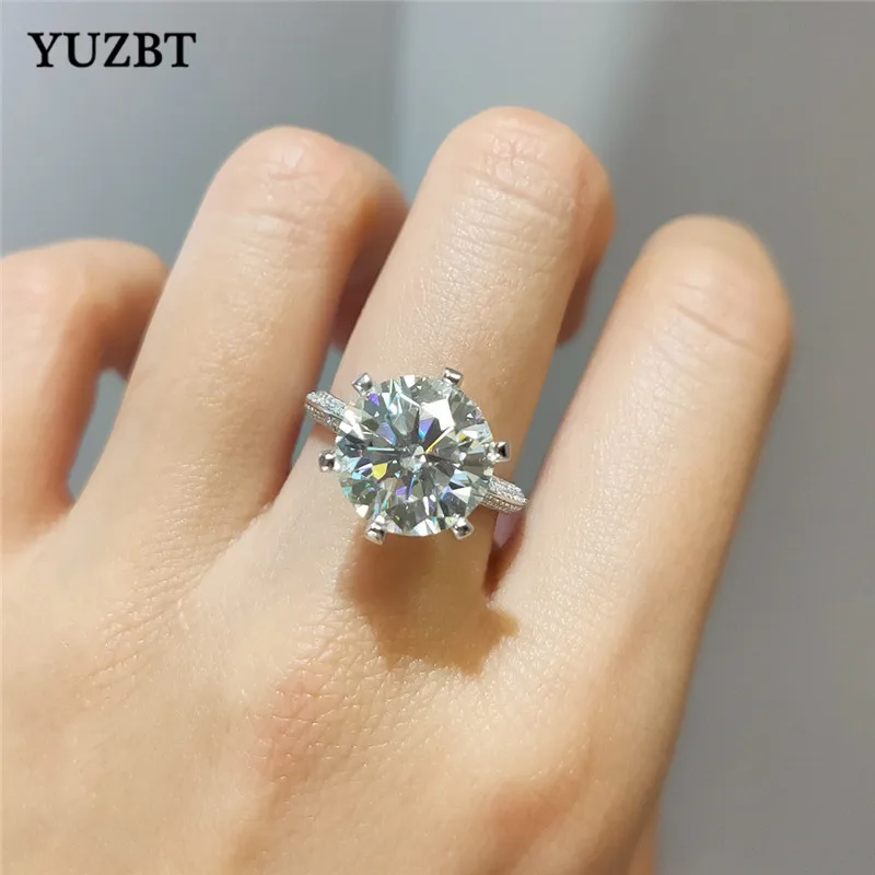 Кольцо YUZBT с муассанитом женское из белого золота 18 карат, с бриллиантом бриллиантовой огранки диаметром 11 мм, цвет D, свадебное Ювелирное Украшение, 5 карат