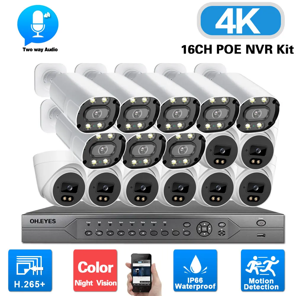8/16 x HD POE IP 4K крытые наружные ИК камеры ночного видения;