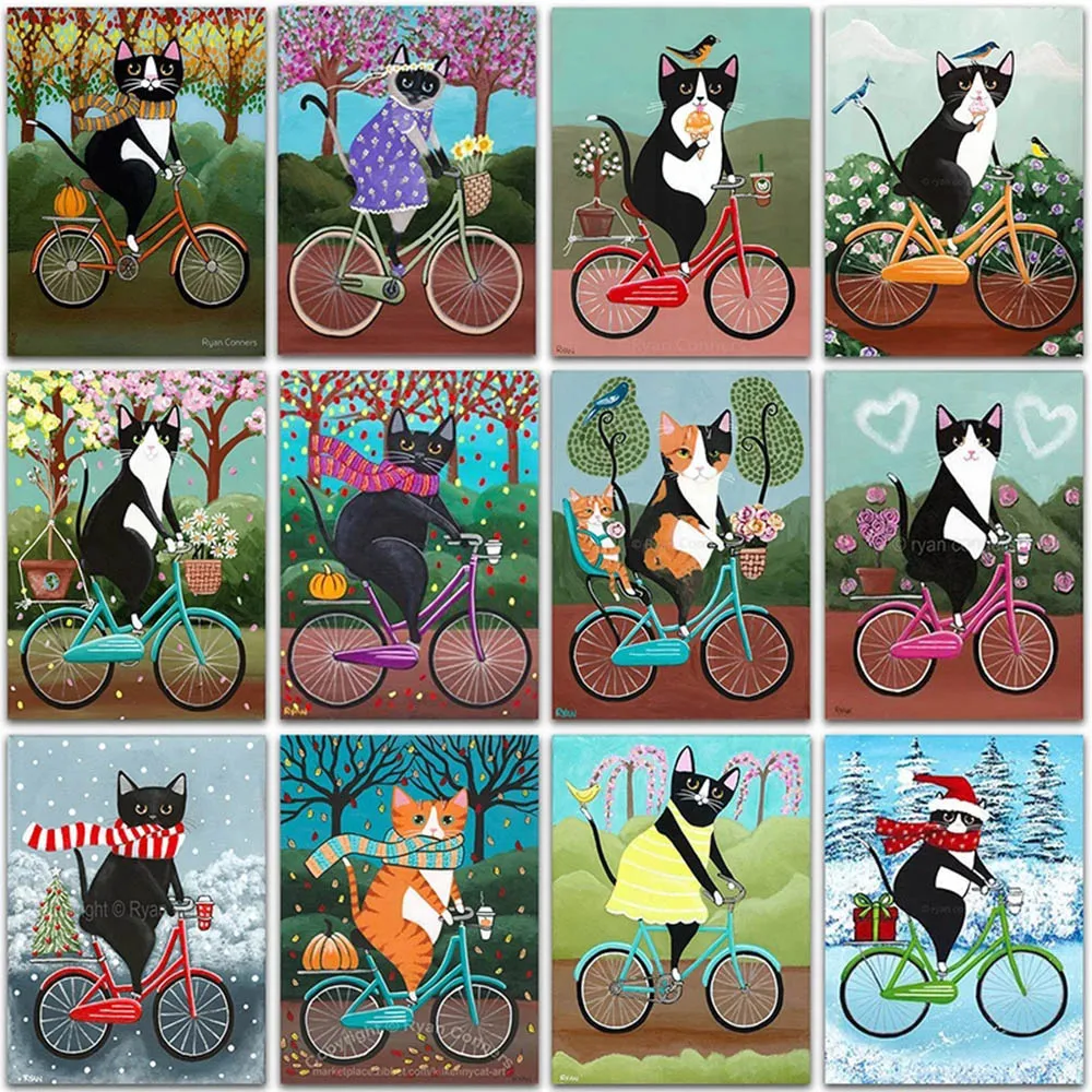 Набор для алмазной живописи 5D сделай сам, картина с мультяшными животными, кошками, полноразмерная и круглая Алмазная вышивка крестиком, мозаика для домашнего декора