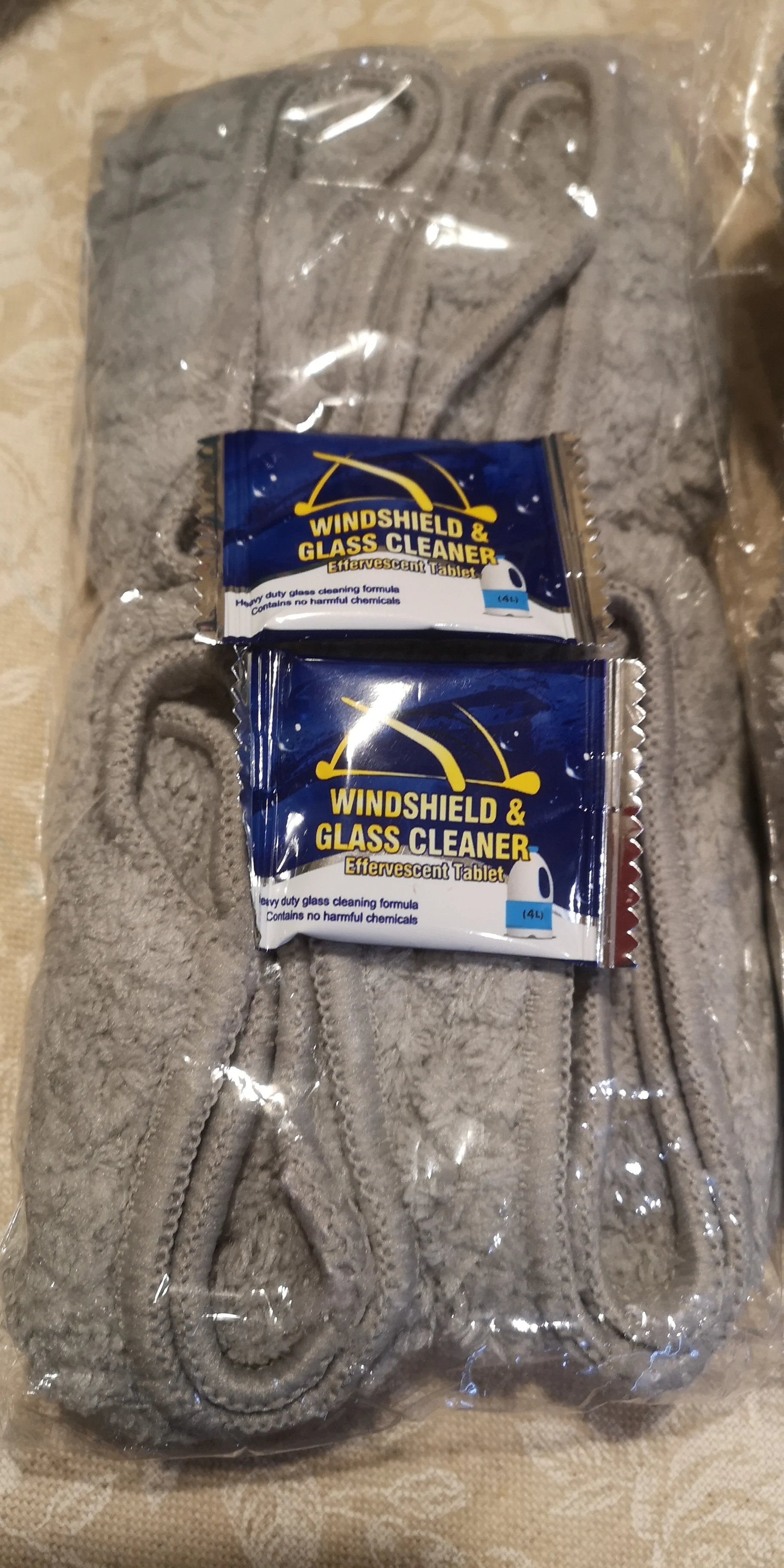 Салфетки как в комплекте, только одеваются немного проще. И теперь у меня есть 8 литров жидкости для стёкол :)) Рекомендую товар и продавца. Доставка быстрая.