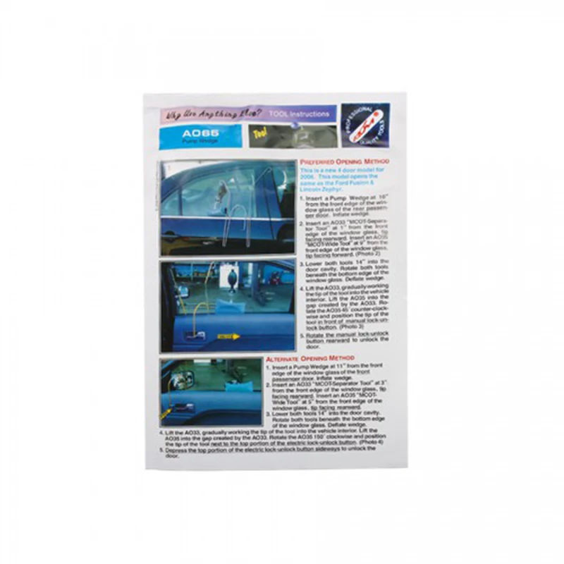 Воздушные клинья используются между автомобильной дверью и дверной рамой. Эта танкетка позволяетЧтобы создать пространство между дверью и рамой, можно использовать зонд для разблокировкиДверь через внутреннюю кнопку разблокировки или рычаг. Инструмент также широко используется в качествеПрокладка при установке межкомнатных дверейL: 285 мм x 125 мм