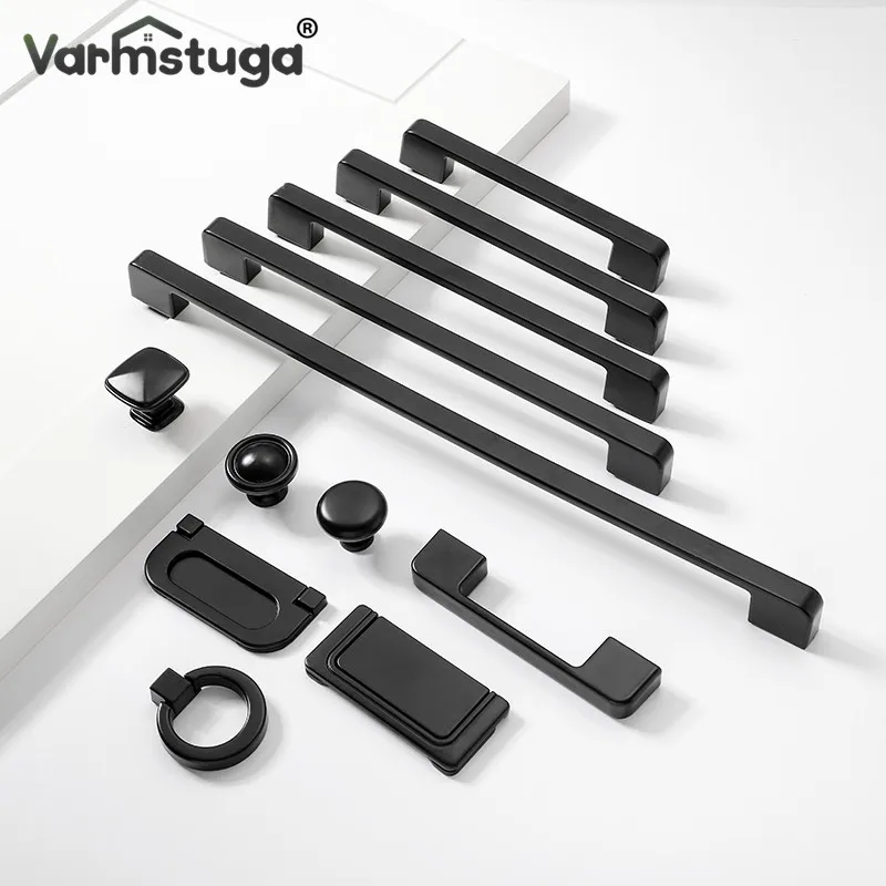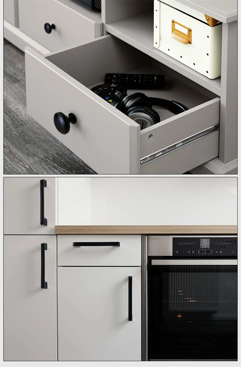 Матовый черный шкаф в американском стиле, ручки из твердого алюминиевого сплава, кухонный шкаф