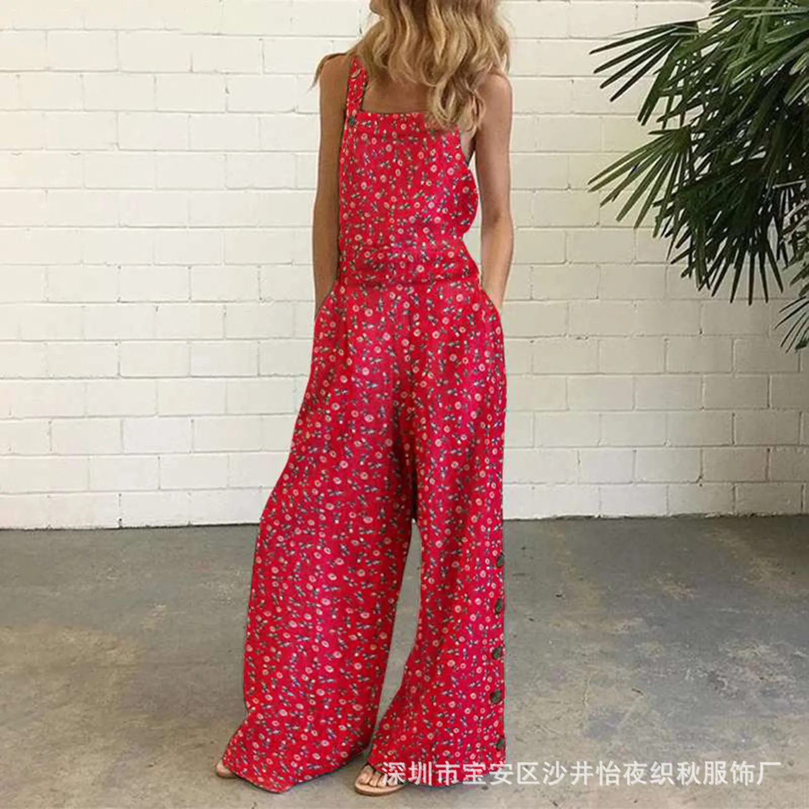 Комбинезон женский на бретелях, с цветочным принтом, широкие, с кар...