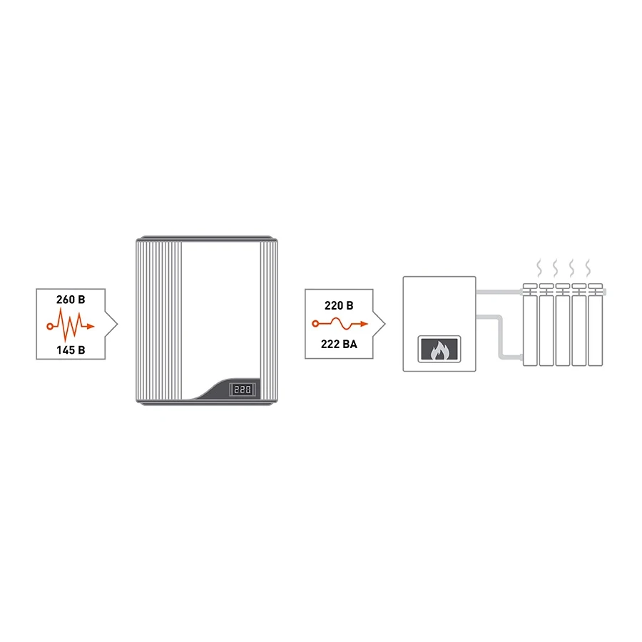 Для газовых настенных котлов отопления с открытой и закрытой камерой сгорания Мощность нагрузки 222 ВА, кратковременная (до 180 сек) перегрузка до 500 ВА для работы с большими пусковыми токами нагрузки Диапазон сети от 145 до 260 В Самотестирование