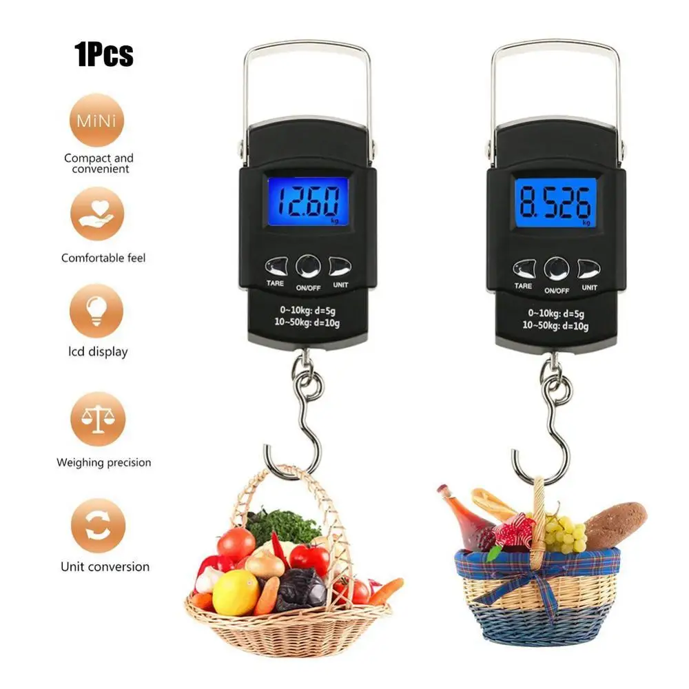 Кухонные электронные весы, цифровой светодиодный прибор для взвешивания рыбы, багажа, максимальный вес 50 кг