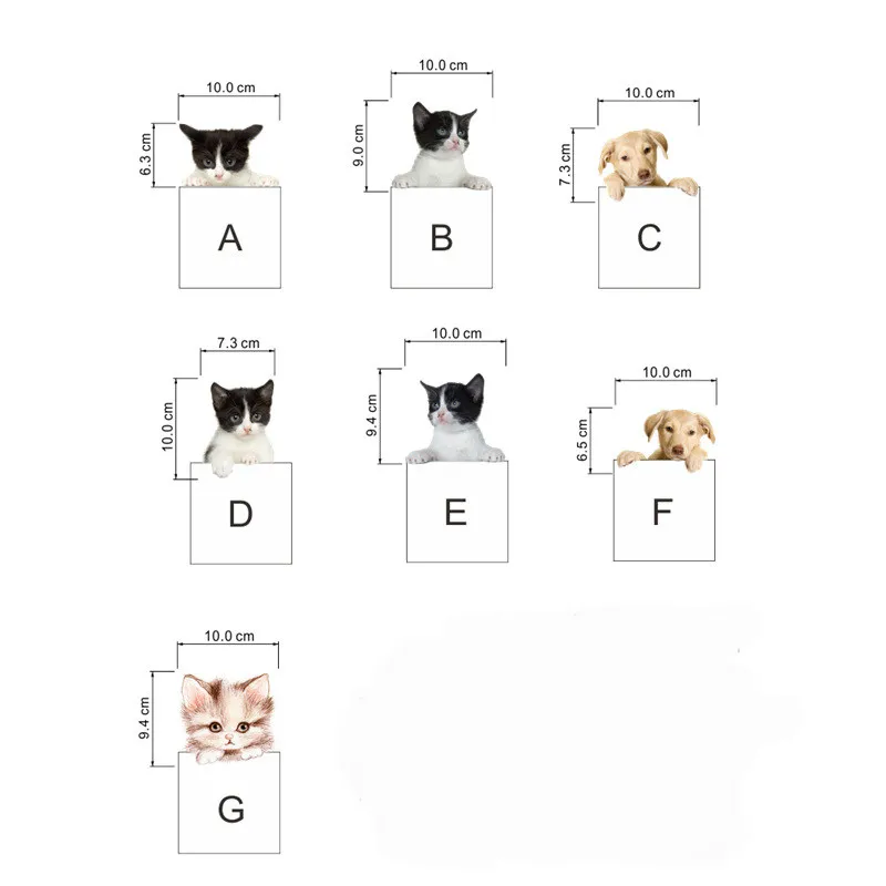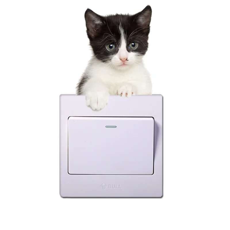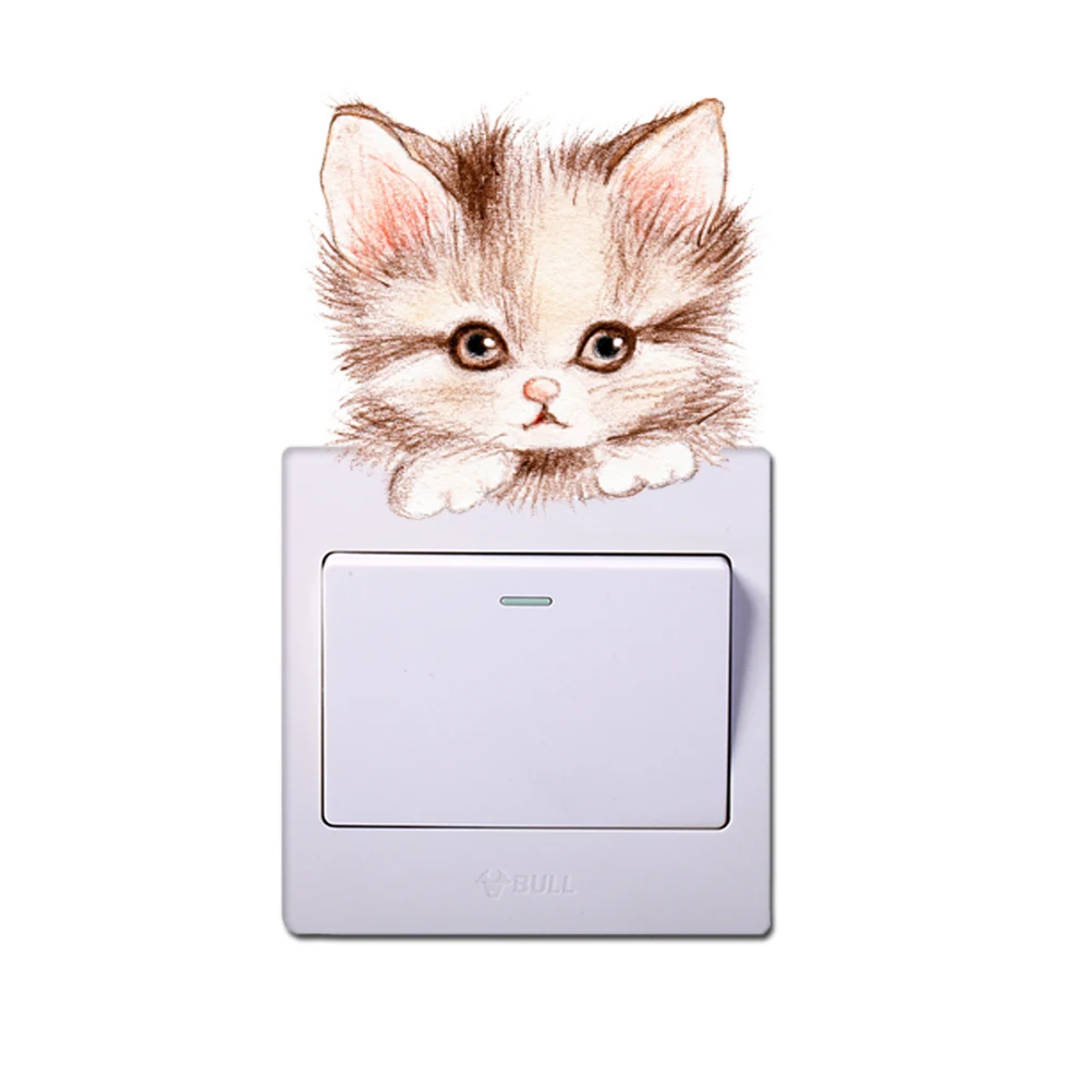 Милый, собака, кот наклейки на выключатель для детской комнаты, спальни, украшения дома, котенок, щенок, 3d Животные, Настенная роспись, самодельная Наклейка на стену, плакат