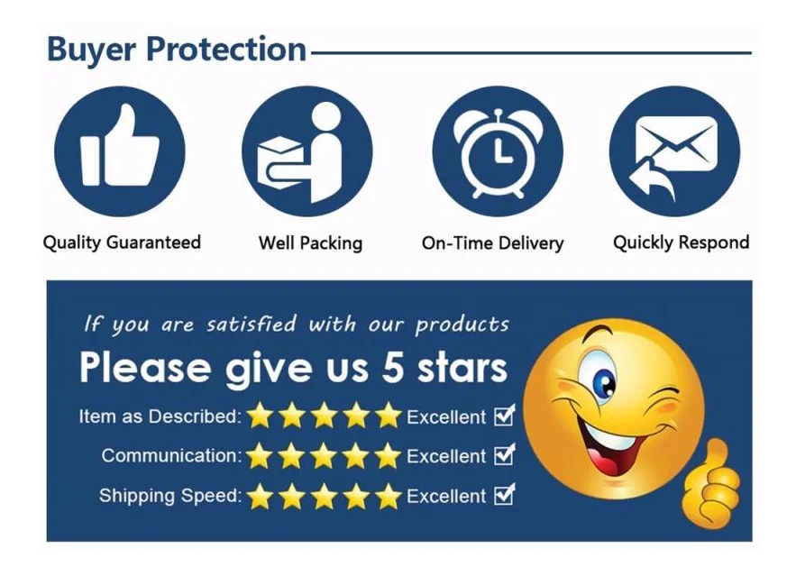 1. Доставка по всему миру. (За исключением некоторых стран и армейской почтовой службы/почтовых отделений флота)2. Заказы обрабатываются своевременно после подтверждения оплаты.3. Мы отправляем только по подтвержденным адресам заказа. Ваш адрес заказа должен совпадать с вашим адресом доставки.4. Представленные изображения не являются фактическим товаром и предназначены только для справки.5. Время доставки определяется перевозчиком и не включает выходные и праздничные дни. Срок доставки может отличаться от указанного. Особенно в сезон отпусков.6. Если вы не получили ваш груз в течение 30 дней с момента оплаты. Пожалуйста, свяжитесь с нами. Мы отследим отправку и свяжемся с вами как можно скорее. Наша цель – удовлетворение клиентов!7. Из-за наличия на складе и разницы во времени. Мы выберем доставку Вашего товара с нашего первого доступного склада для быстрой доставки.