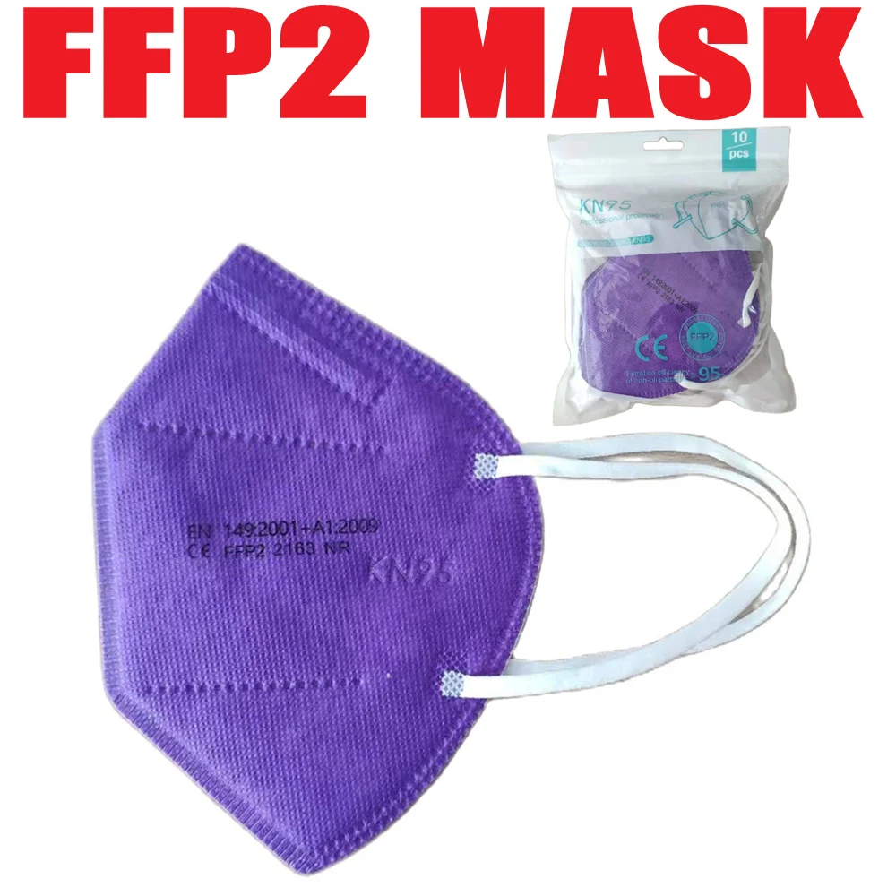 FFP2 маска CE KN95 маска для лица с фильтром для взрослых ffp2mask 5-слойная защитная маска fpp2 Пылезащитная маска фиолетовый респиратор