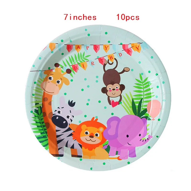 Одноразовая посуда в стиле сафари с животными из мультфильмов, искусственная скатерть, украшение для детского дня рождения, товары для вечерние в джунглях