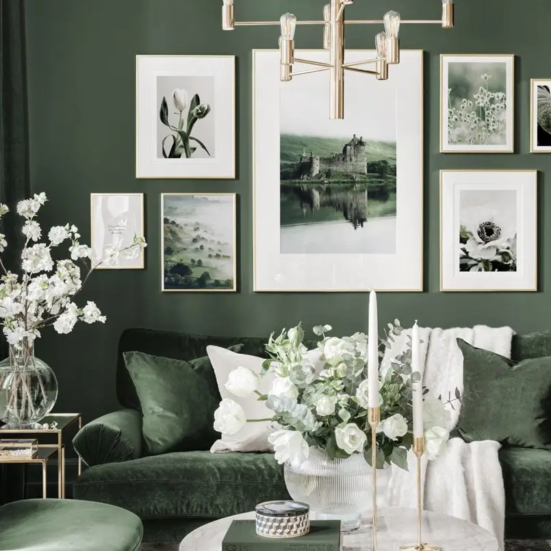 Золотая вихревая эвкалипт океан пляж птицы пион любовь настенная Ка...