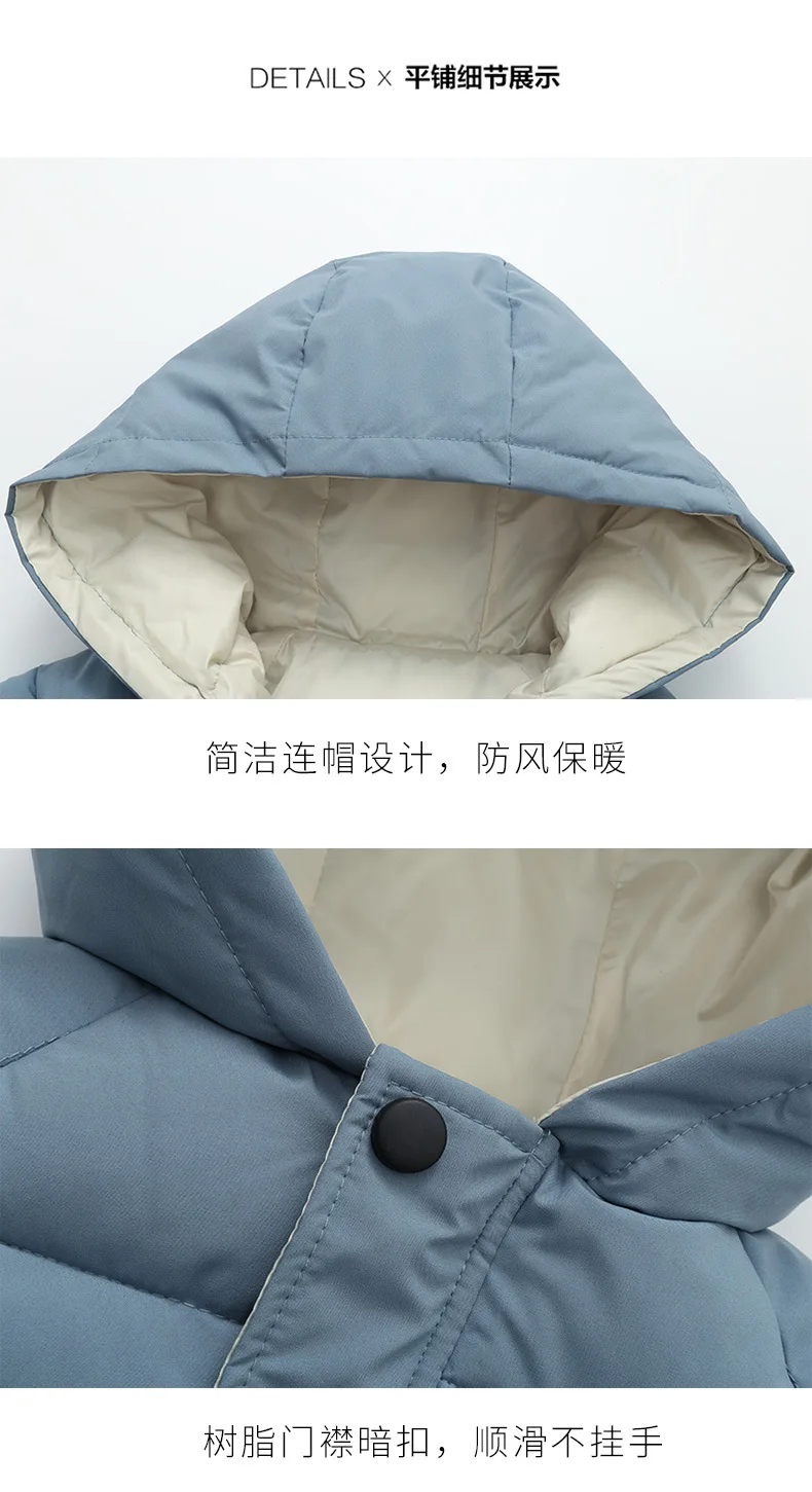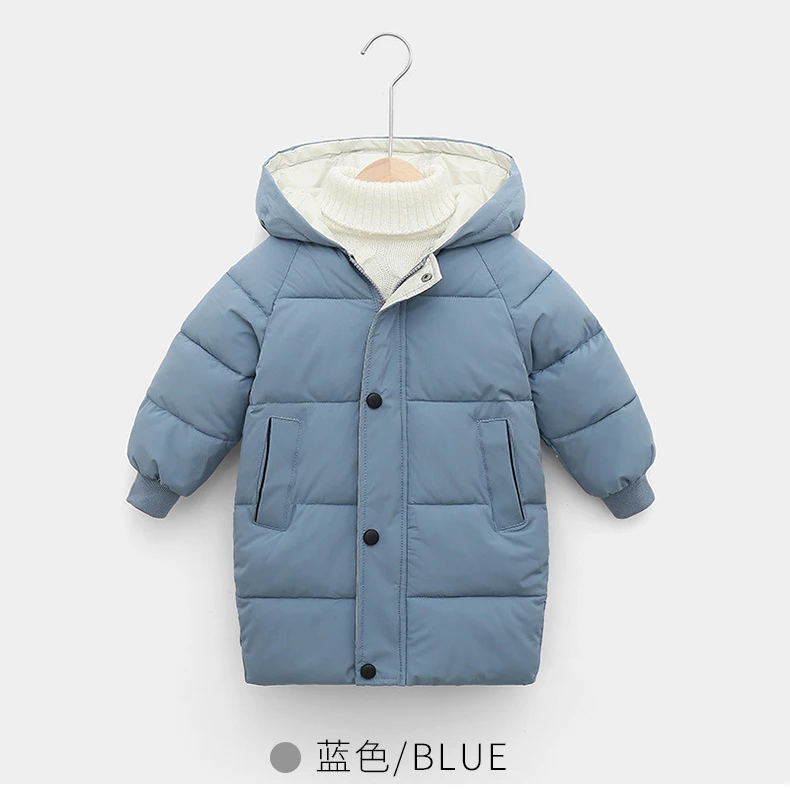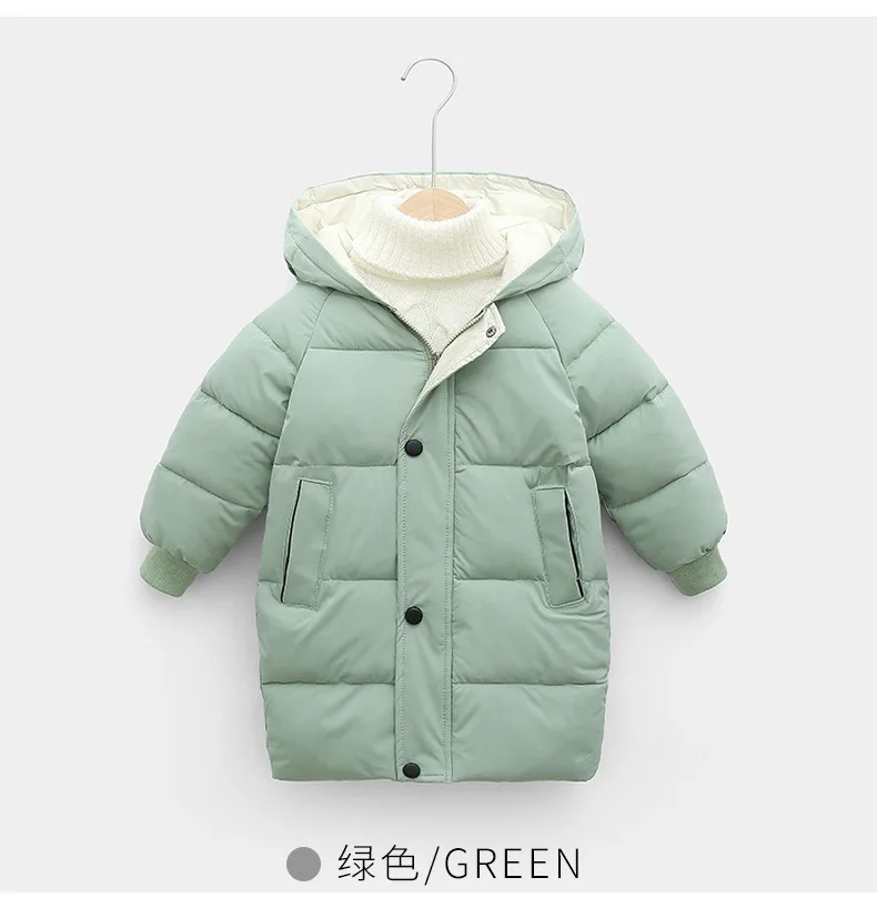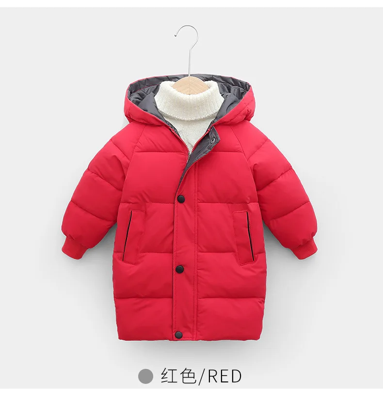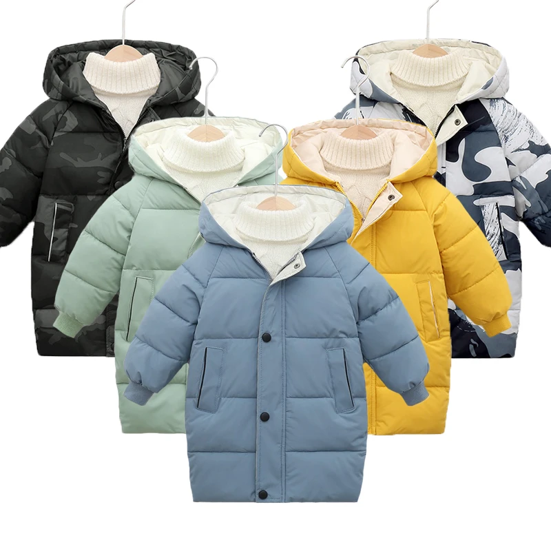 Длинная стильная зимняя теплая куртка большого размера для мальчиков и девочек, хлопковая плотная ветровка с капюшоном для детей, рождественский подарок, верхняя одежда