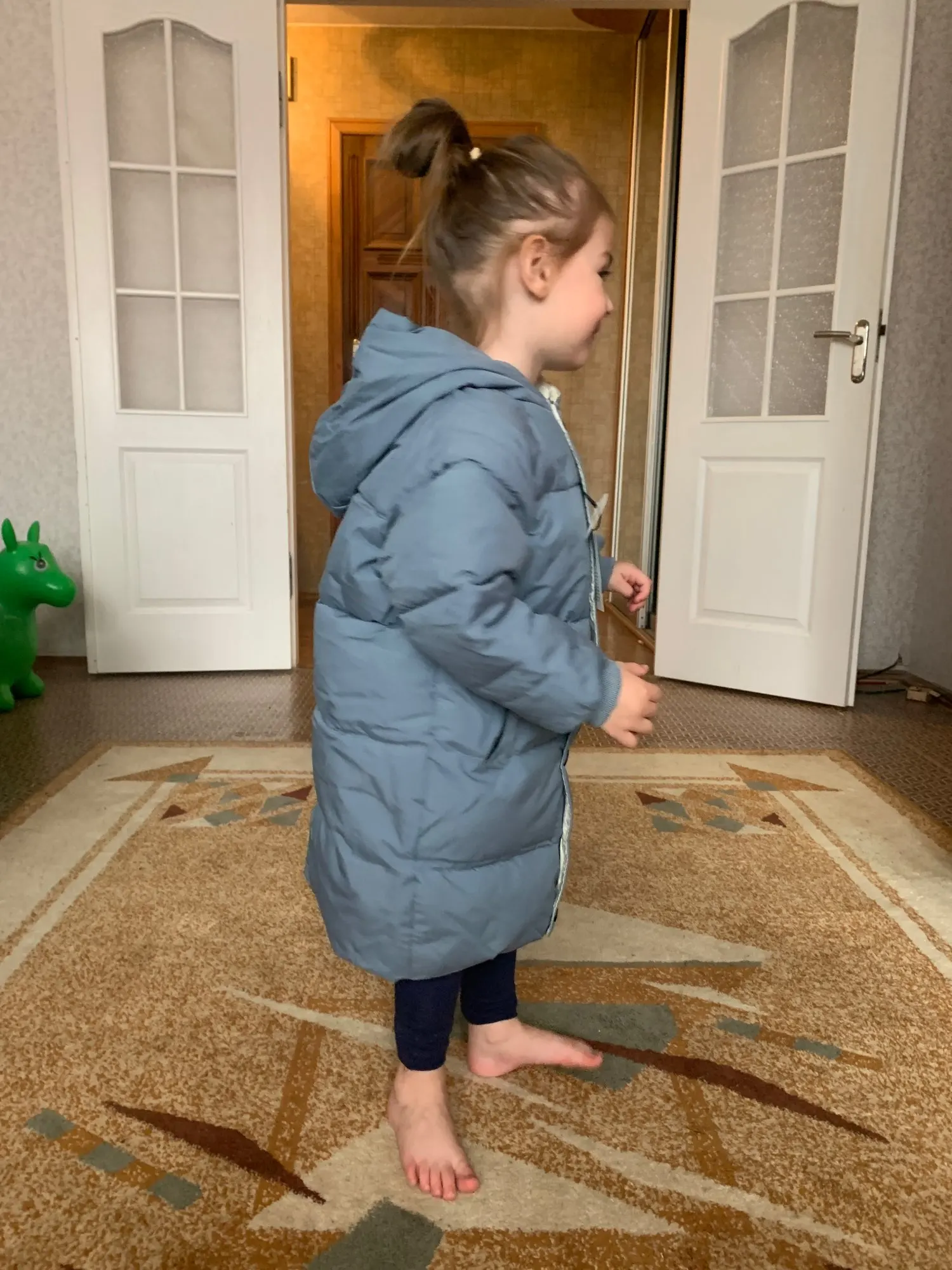 Классная куртка не на один сезон точно! На холодную осень и с тёплой кофтой на теплую зиму. В двух местах не очень равномерно наполнитель был, но совсем не критично. Гладила утюгом на низкой температуре. Пришла за 25 дней. Продавец на связи. Очень довольна покупкой! P.S. Рост ребёнка 96 см, вес 13,8