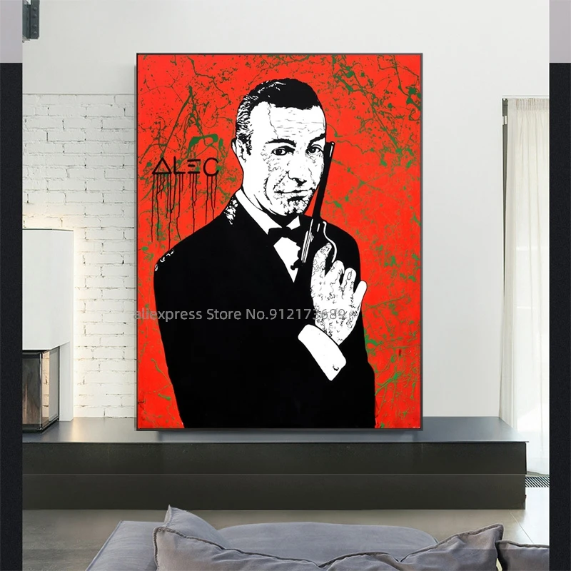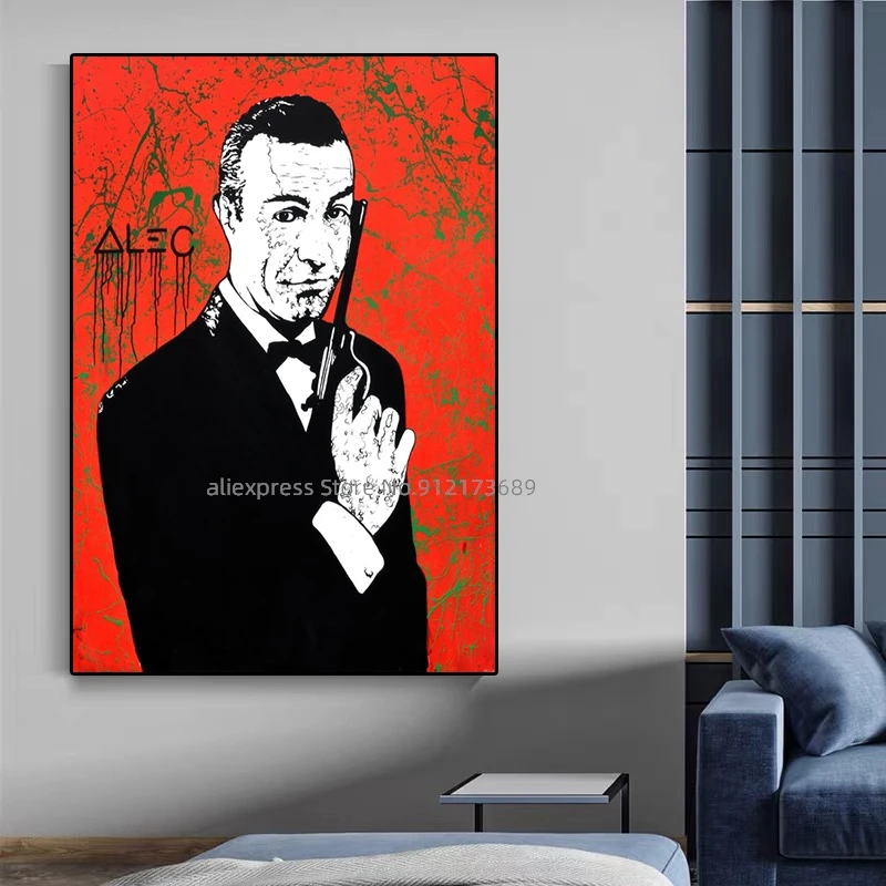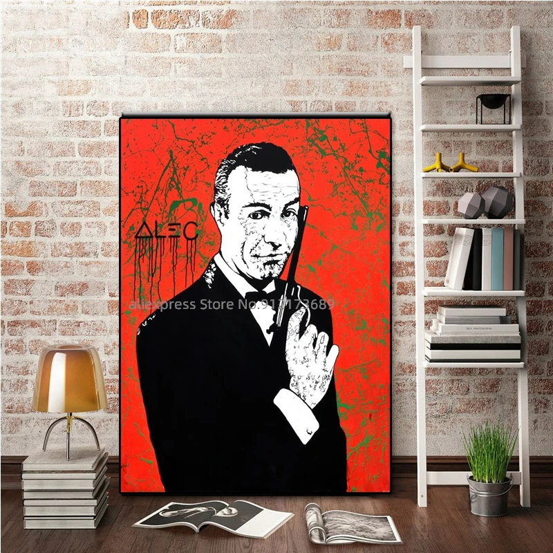 Alec Монополия улица GTraffiti искусство Роджер Мур Джеймс Бонд 007 фильм, рисунок на холсте постер картина для украшения дома Настенная картина