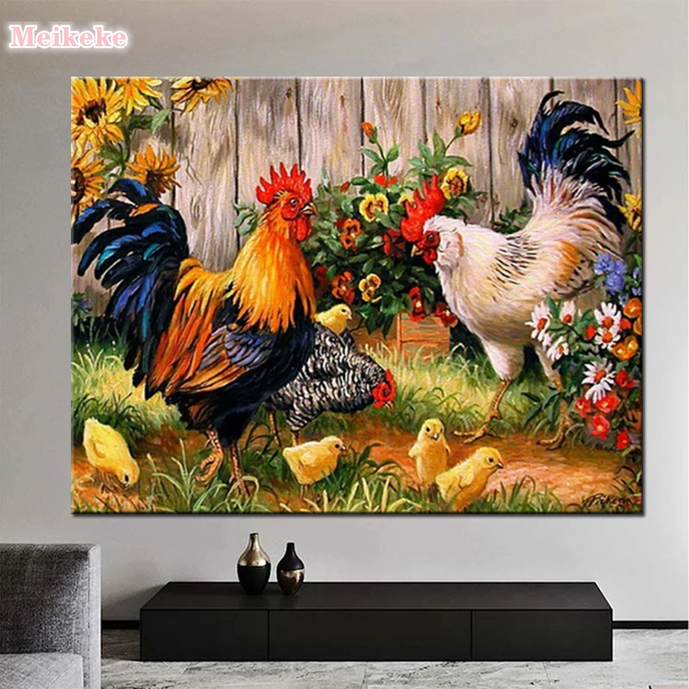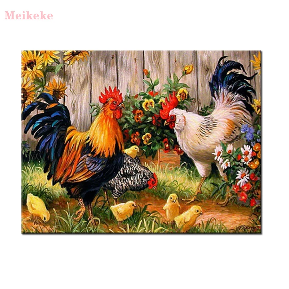 Diy алмаз, живопись, декоративные картины цыплят в саду Алмазная вышивка полностью квадратная дрель Петух Курица