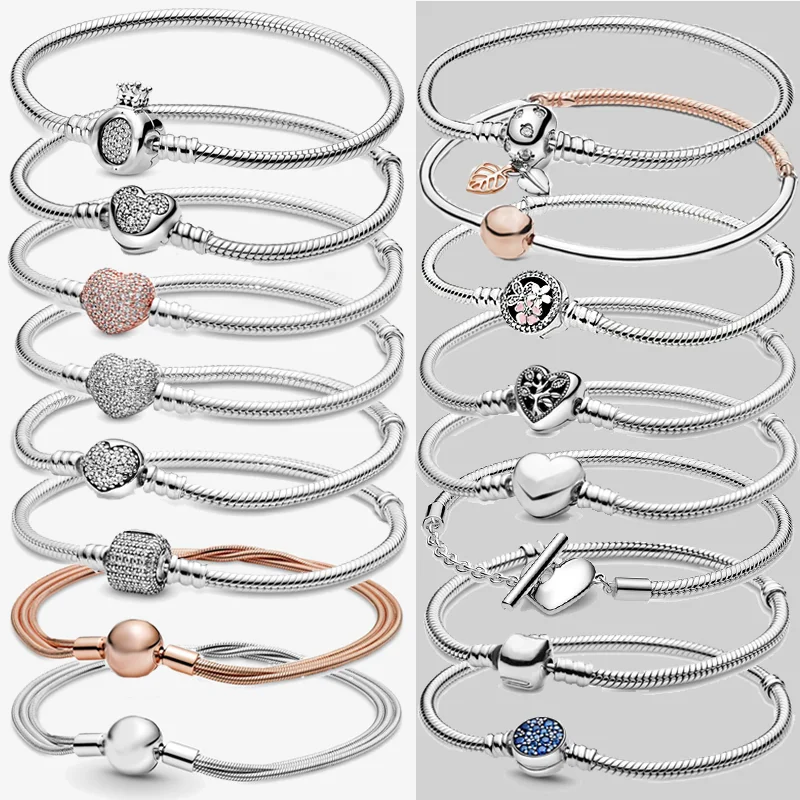 Оригинальный серебряный браслет со сверкающими розовыми сердечками, змеиная цепочка с застежкой, разные стили, женский браслет, ювелирные изделия, браслеты