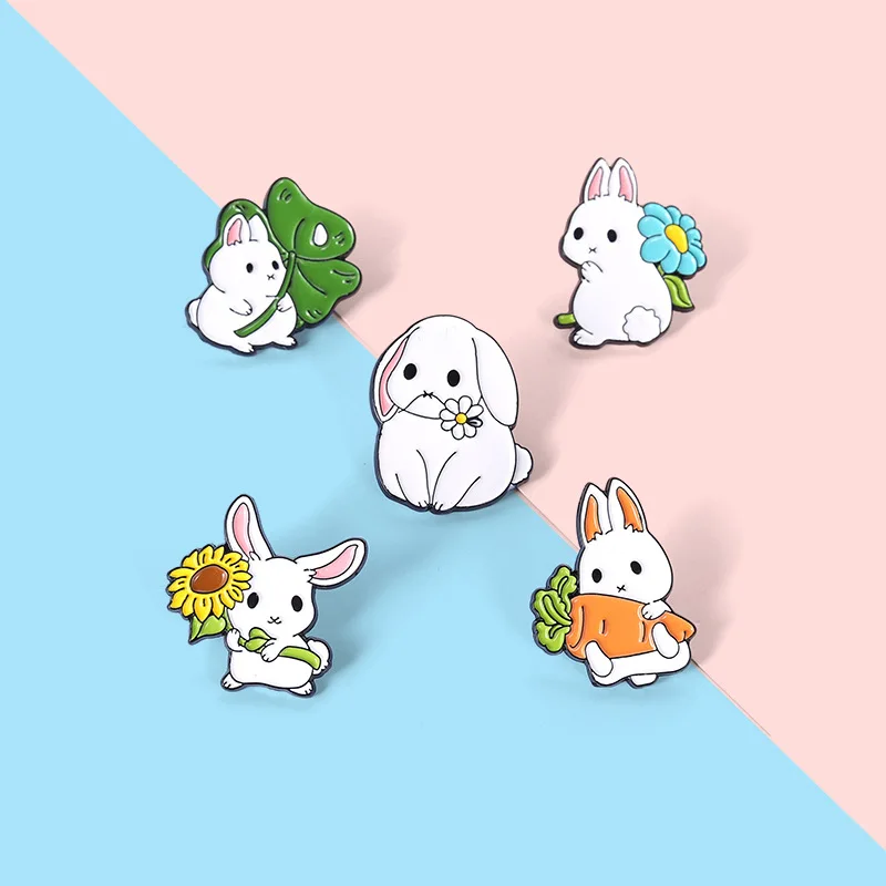 Эмалированные булавки с цветами, растениями, кроликами, Симпатичные...