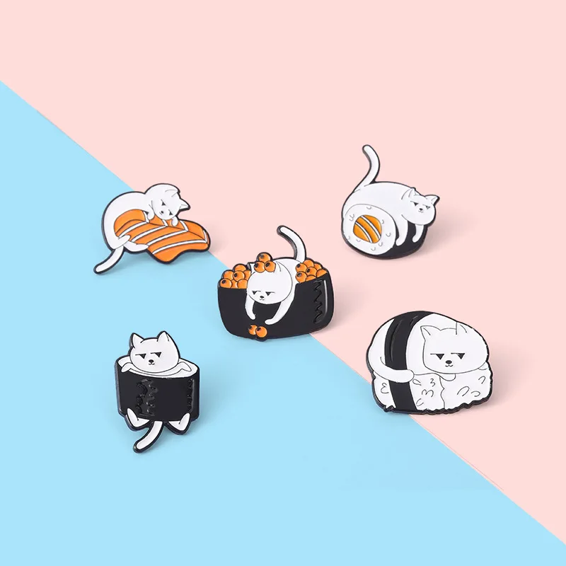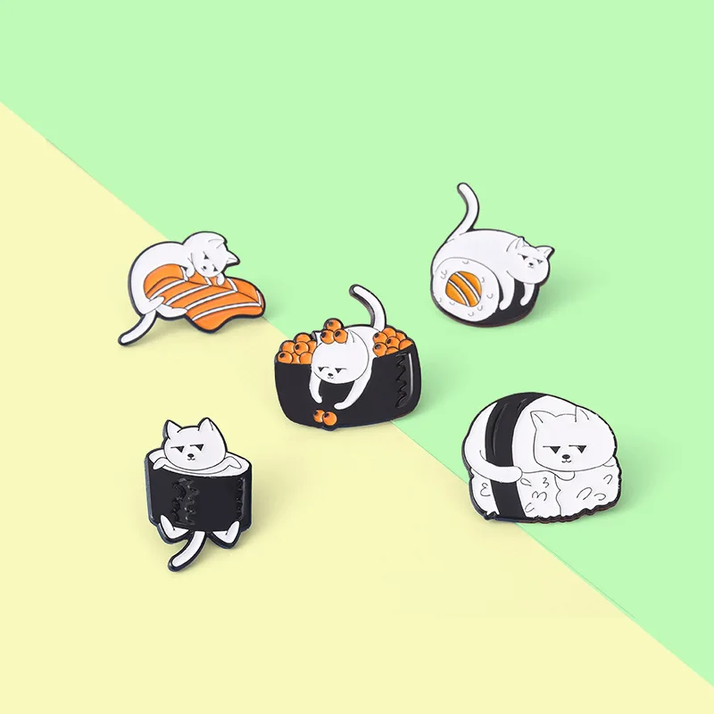 Эмалированная брошь в виде мультяшного Милого Животного кота, брошь для моделирования суши, лосося, котенка, булавки из сплава, значки в стиле панк, аксессуары, женская бижутерия, подарок