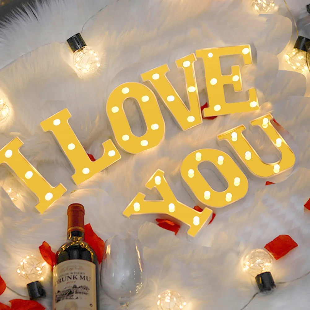 Светильник лампа с украшением в виде букв, светящаяся лампа с питанием от батарейки, лампа с буквами, светильник для украшения на Рождество, свадьбу, день рождения